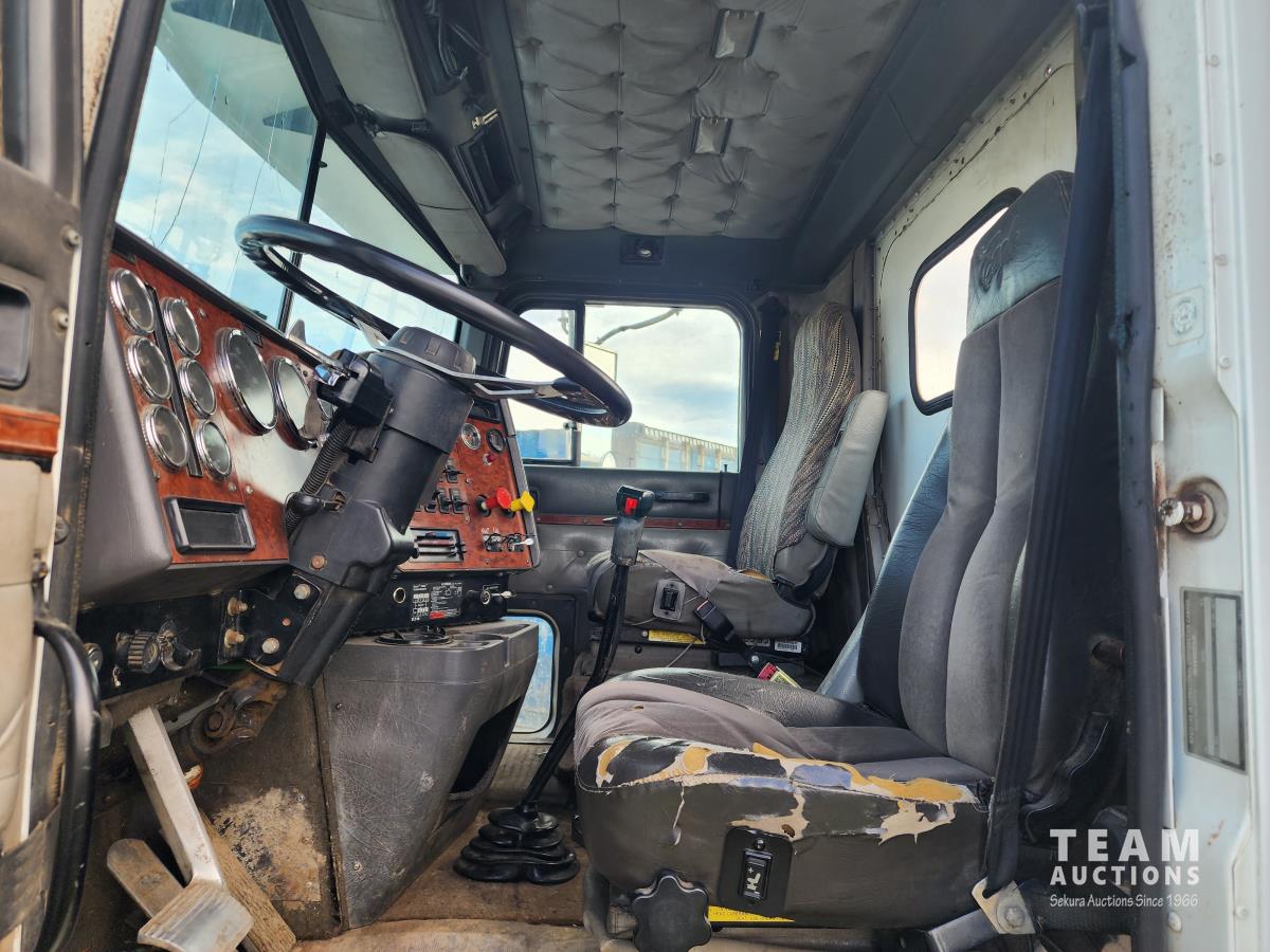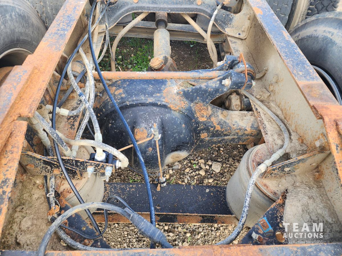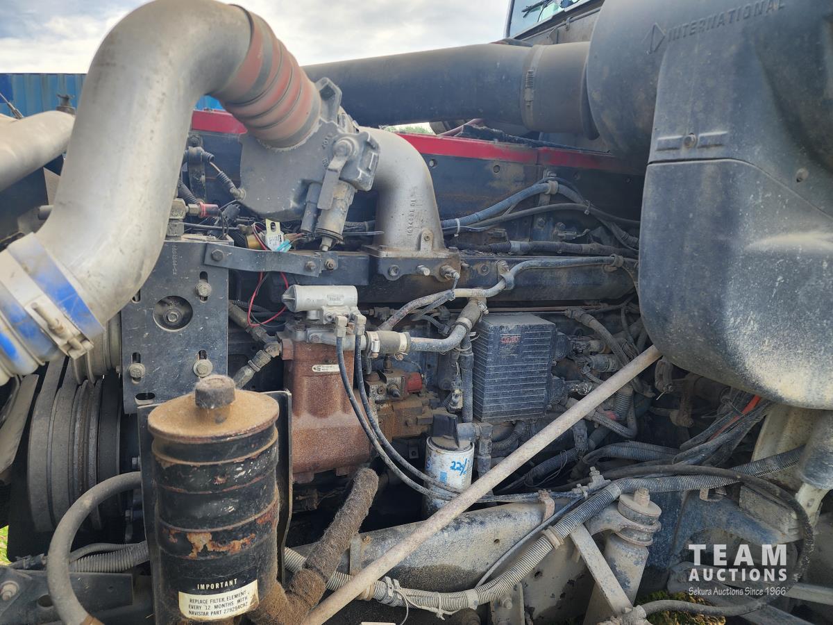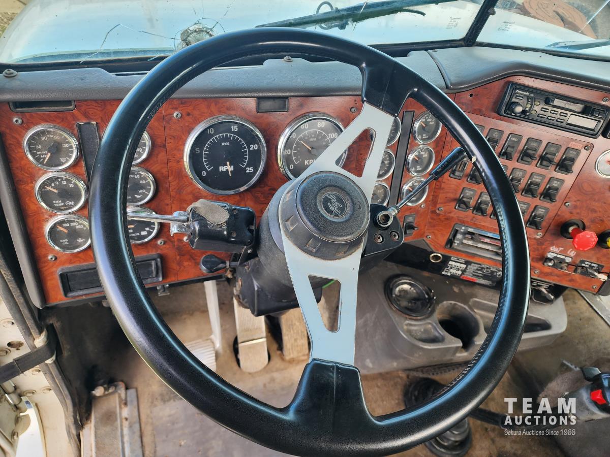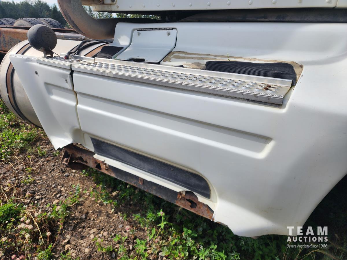 Cummins N14 6 cylinder engine, Eaton Fuller 13 speed transmission, A/C, air ride suspension, 12,860 lb front axle, 40,000 lb rear axles, 209 inch WB, pintle hitch, all aluminum wheels, 11R24.5 tires