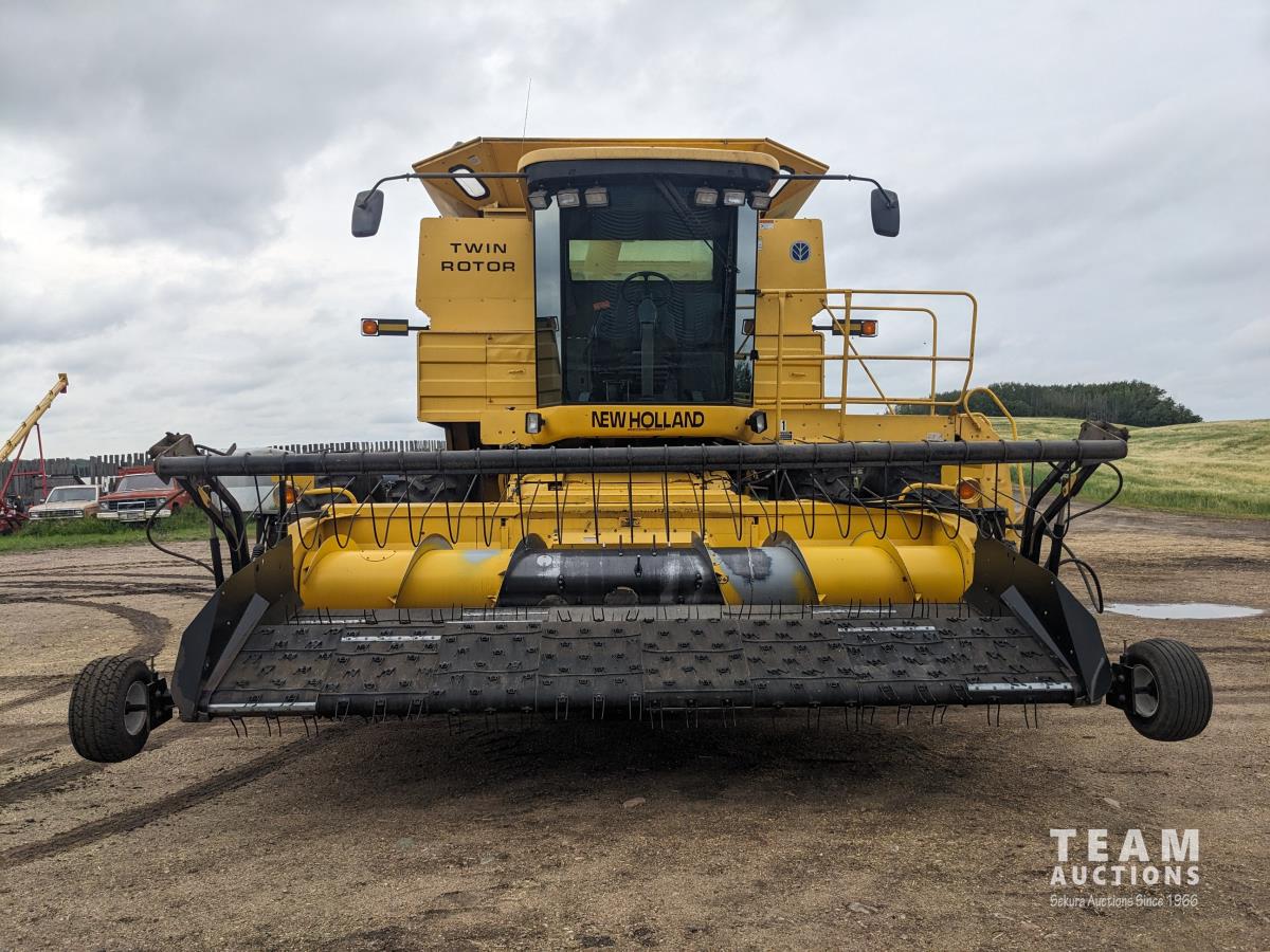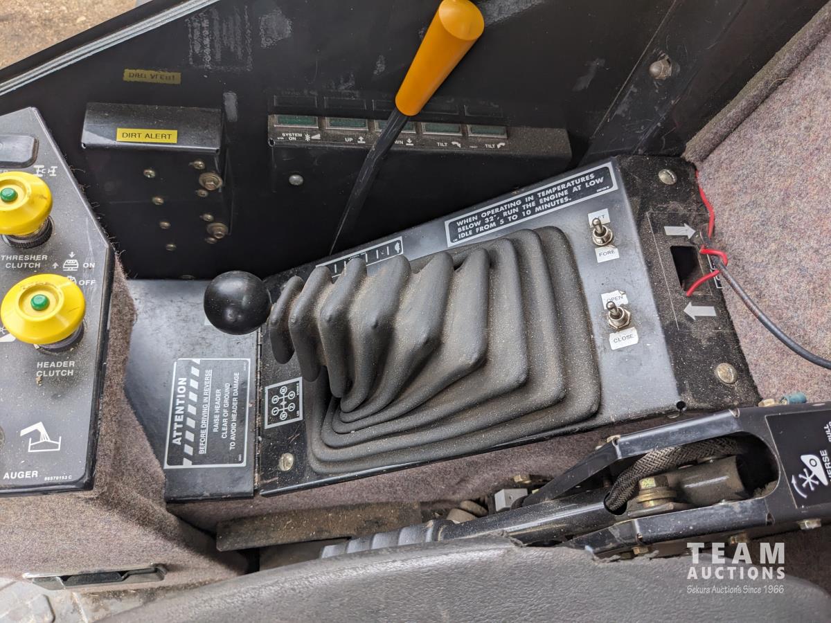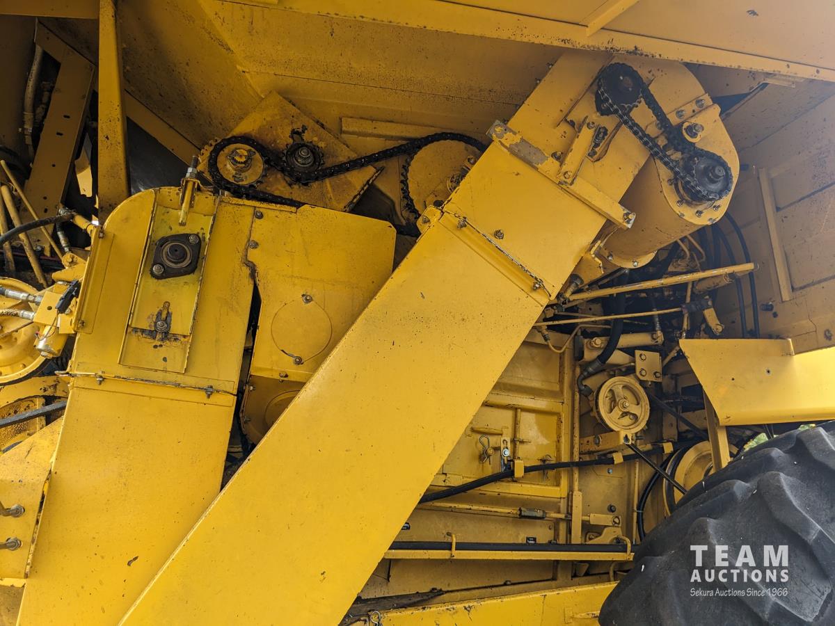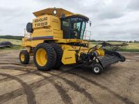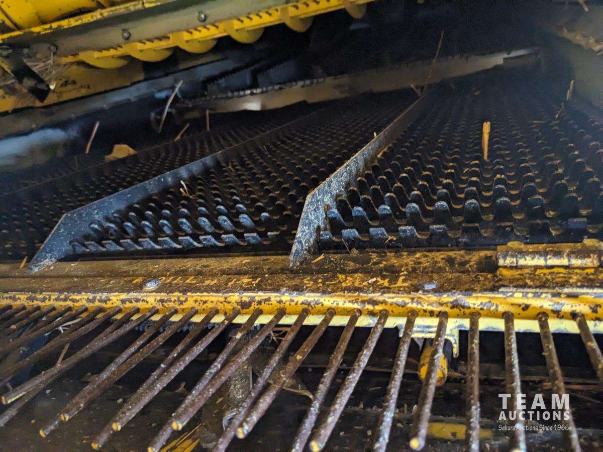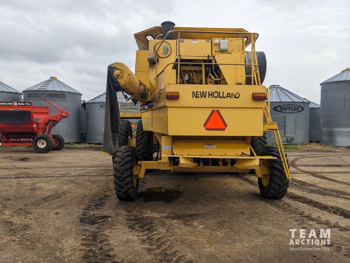 New Holland 14 ft pick-up header, reverser, rock trap, Swath Master pickup, Big Top hopper extension, Redekop 4150 chopper, A/C, buddy seat, 18.4R42 front tires, duals, 14.9-24 rear tires