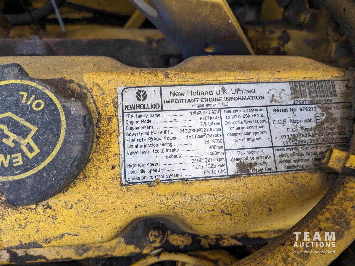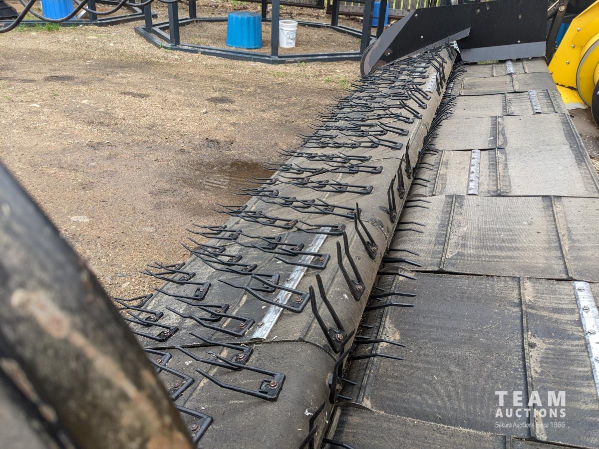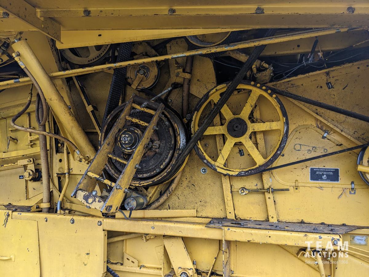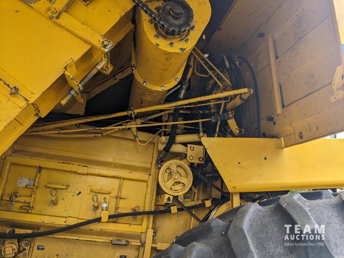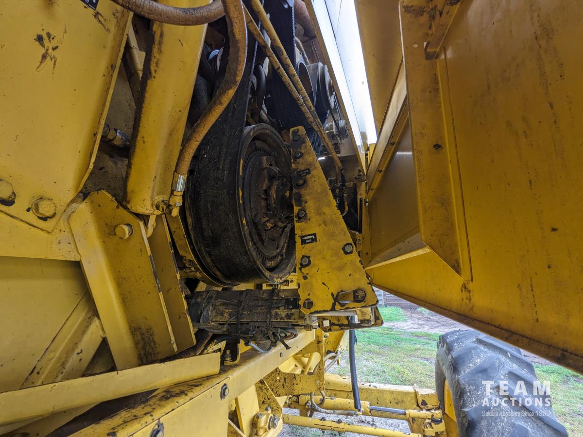 New Holland 14 ft pick-up header, reverser, rock trap, Swath Master pickup, Big Top hopper extension, Redekop 4150 chopper, A/C, buddy seat, 18.4R42 front tires, duals, 14.9-24 rear tires
