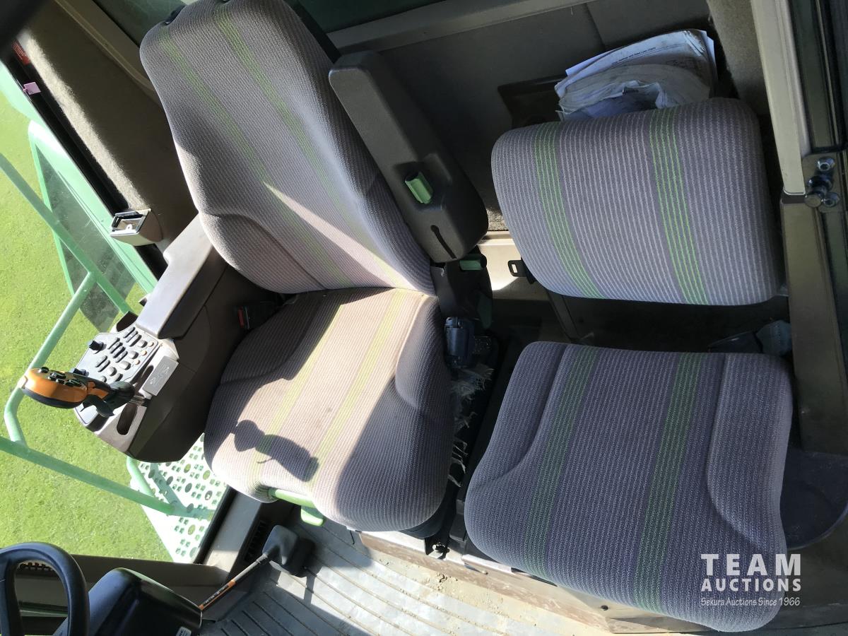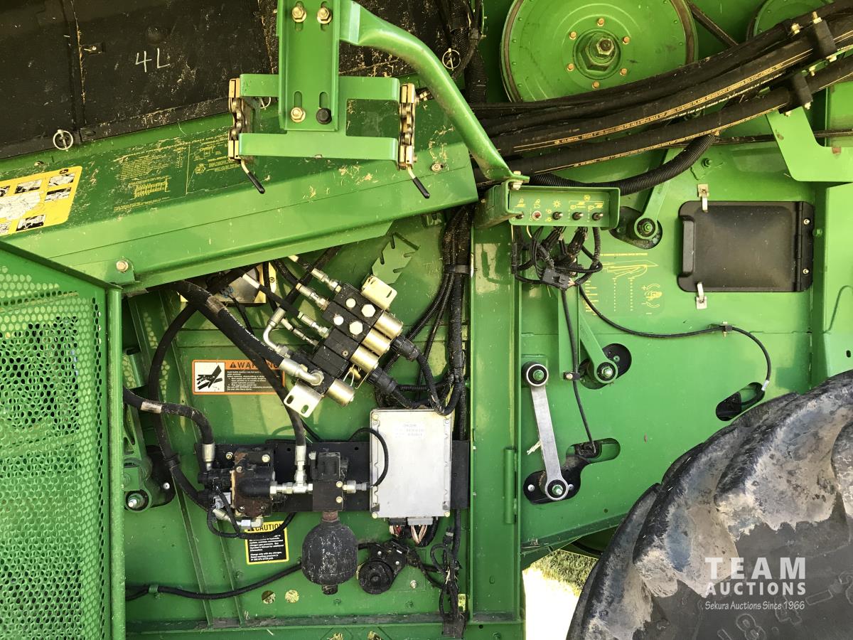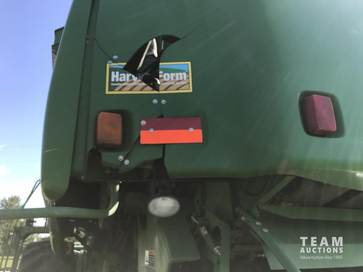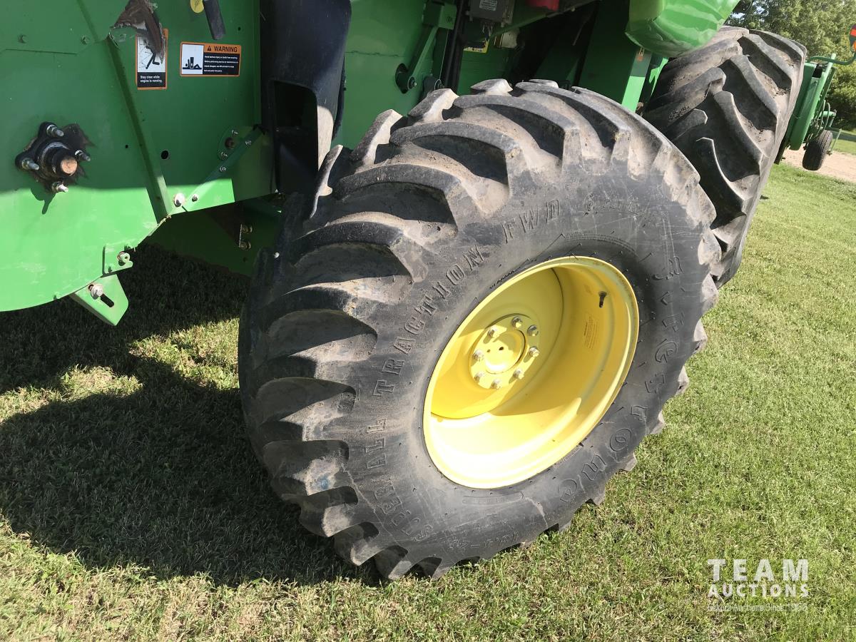 John Deere 914 14 ft pick-up header, 7 belt pickup, reverser, Crary Big Top Hopper topper, buddy seat, 800/65R32 drive tires, 18.4/26 rear tires