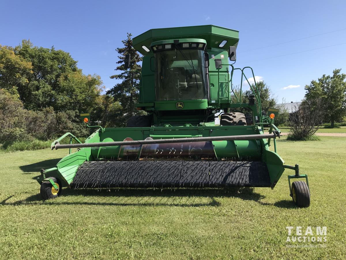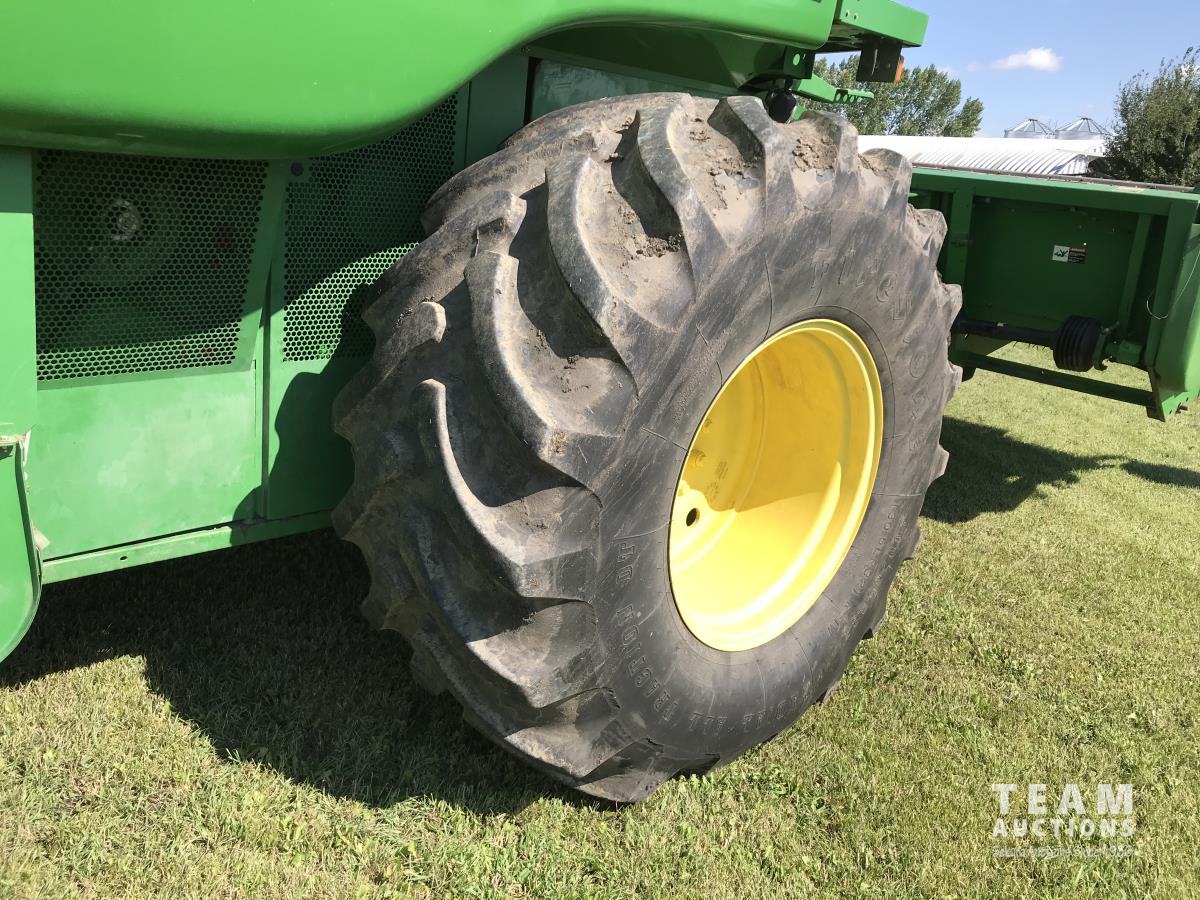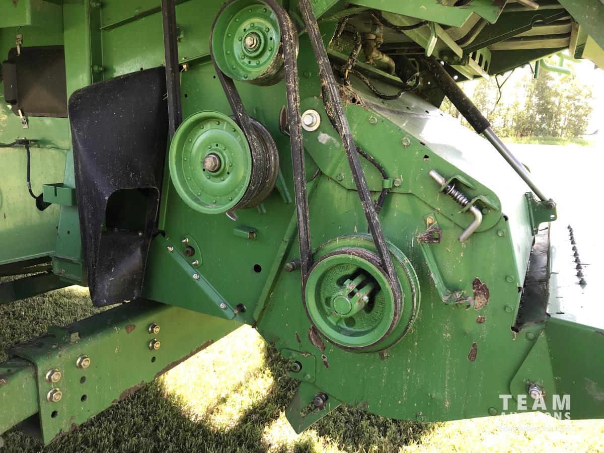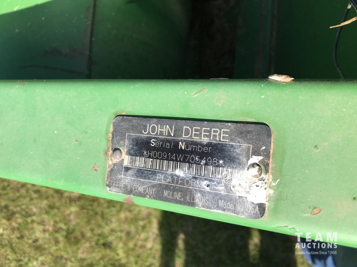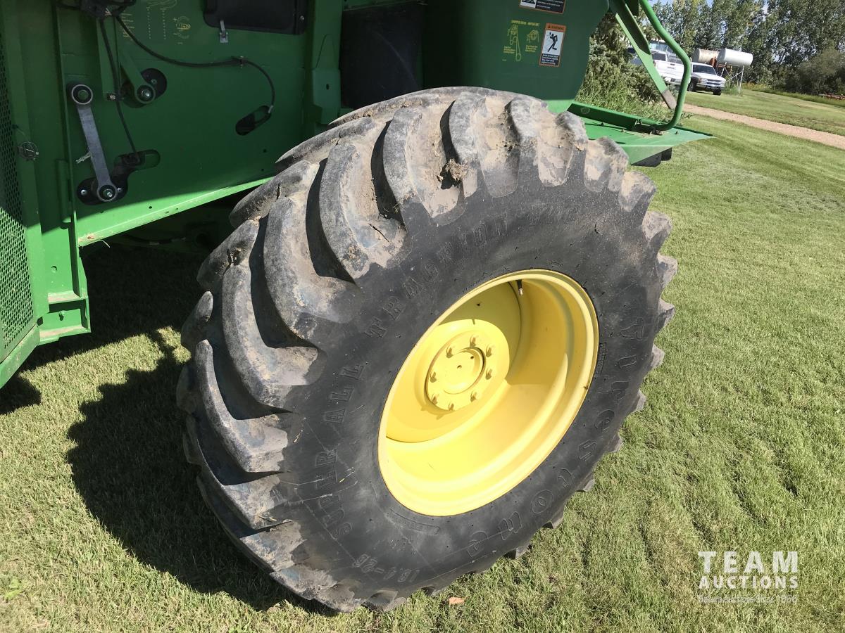 John Deere 914 14 ft pick-up header, 7 belt pickup, reverser, Crary Big Top Hopper topper, buddy seat, 800/65R32 drive tires, 18.4/26 rear tires