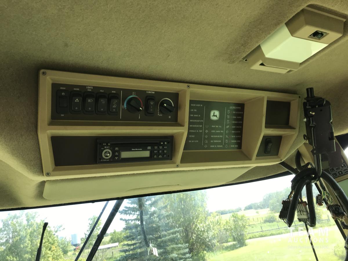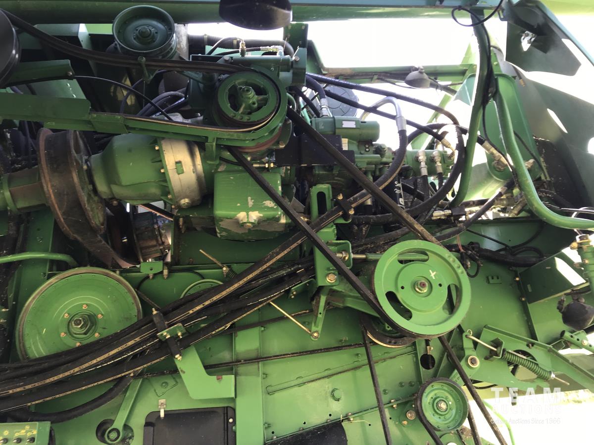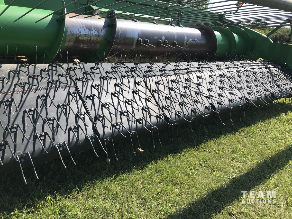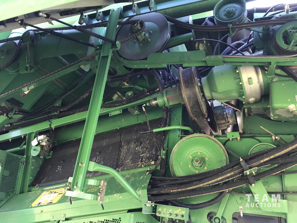 John Deere 914 14 ft pick-up header, 7 belt pickup, reverser, Crary Big Top Hopper topper, buddy seat, 800/65R32 drive tires, 18.4/26 rear tires