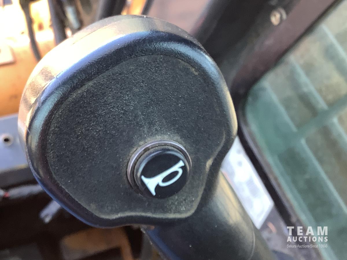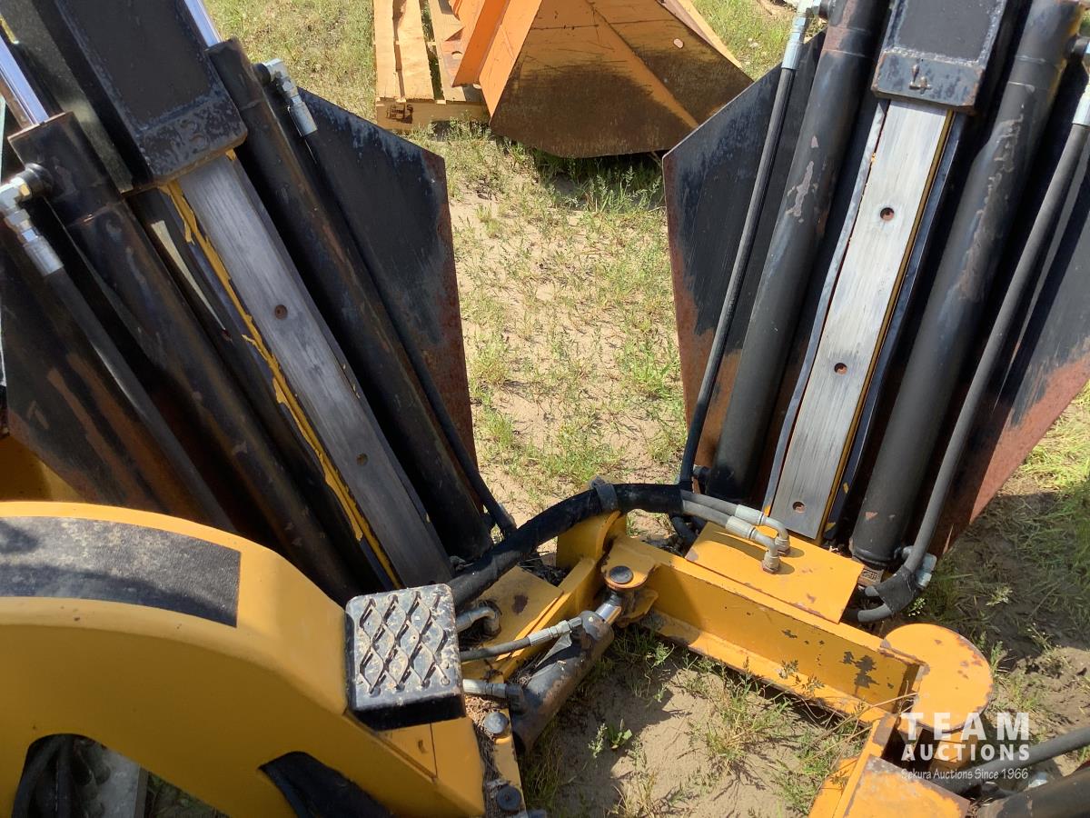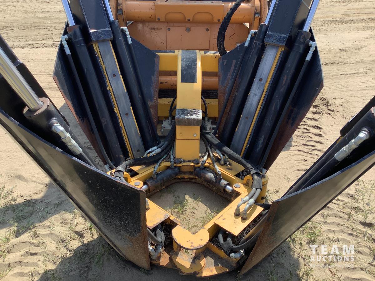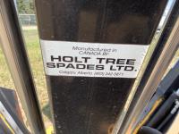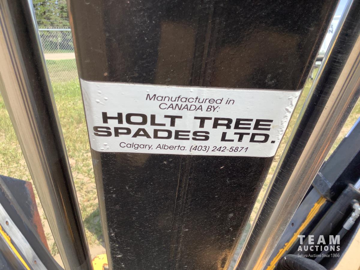 Fully enclosed cab, A/C, heat, factory rear hydraulic stabilizer, ride control, 72 inch smooth factory bucket, 2012 Holt 38 inch tree spade, in cab control control stick, 12-16.5 tires