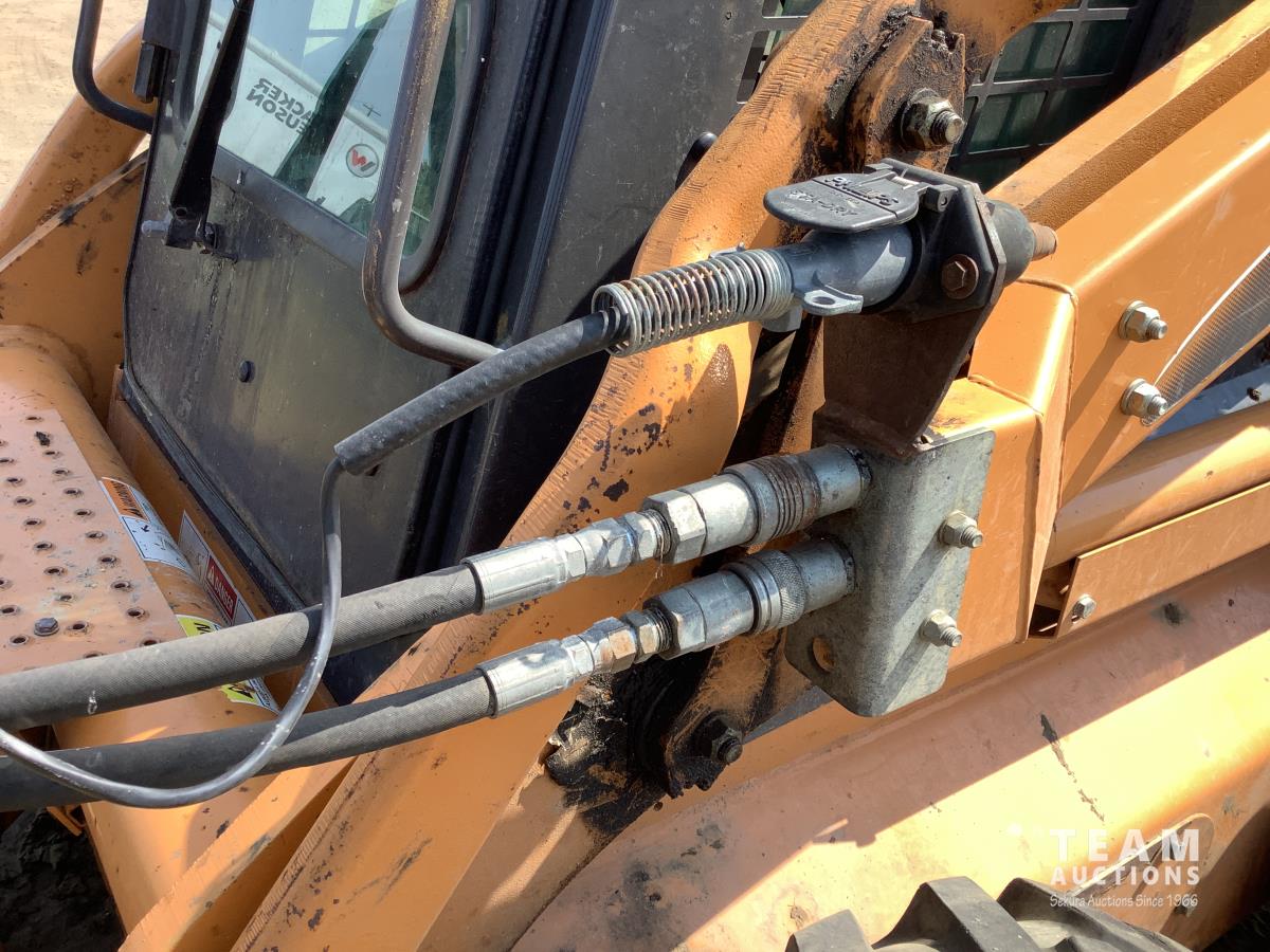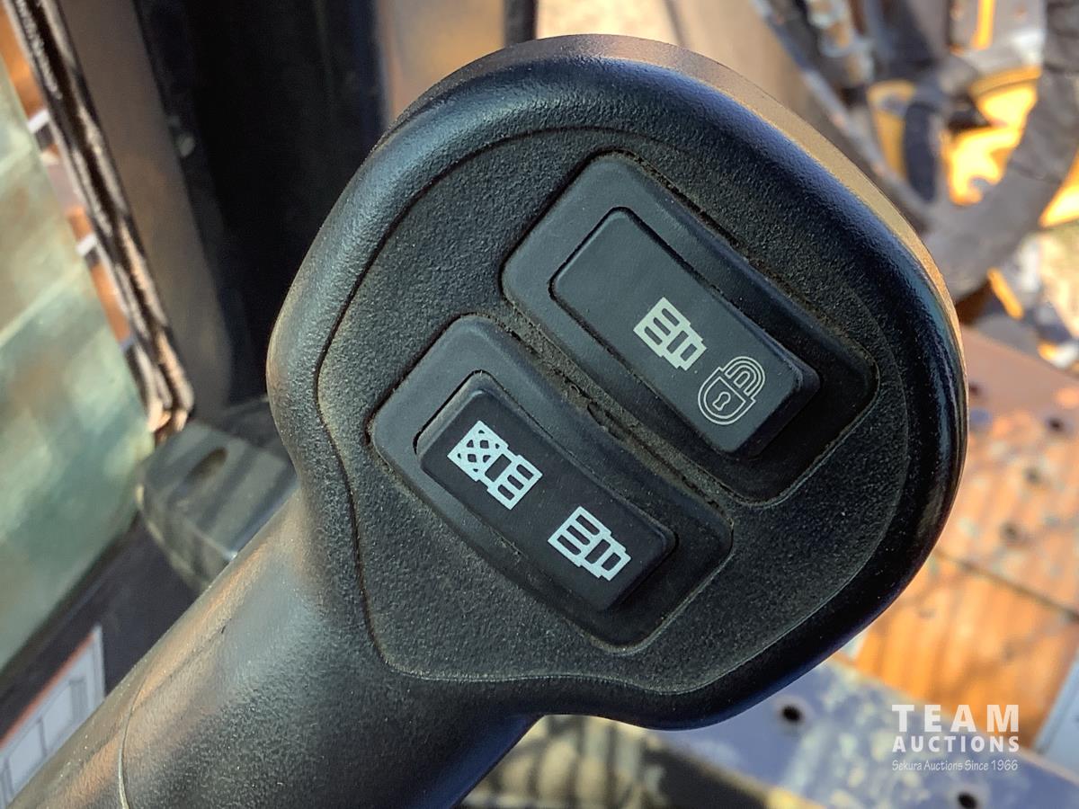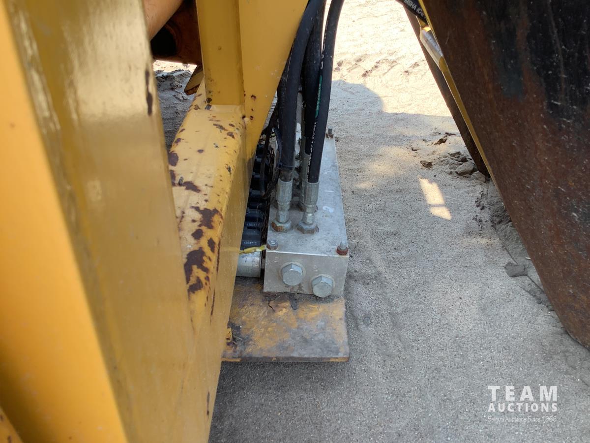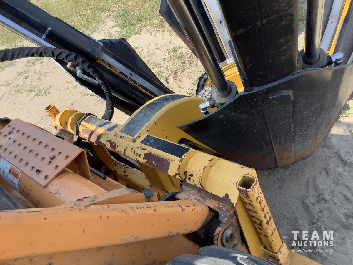 Fully enclosed cab, A/C, heat, factory rear hydraulic stabilizer, ride control, 72 inch smooth factory bucket, 2012 Holt 38 inch tree spade, in cab control control stick, 12-16.5 tires