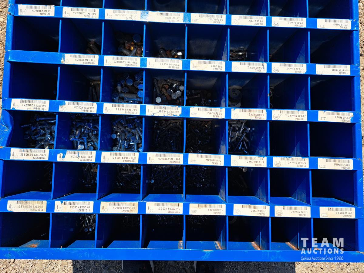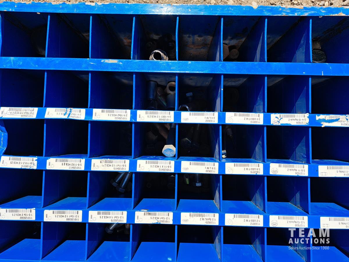 Loaded with a large quantity of unused standard and high grade bolts, washers & miscellaneous, 34 inch wide X 42 inch high X 12 inch deep