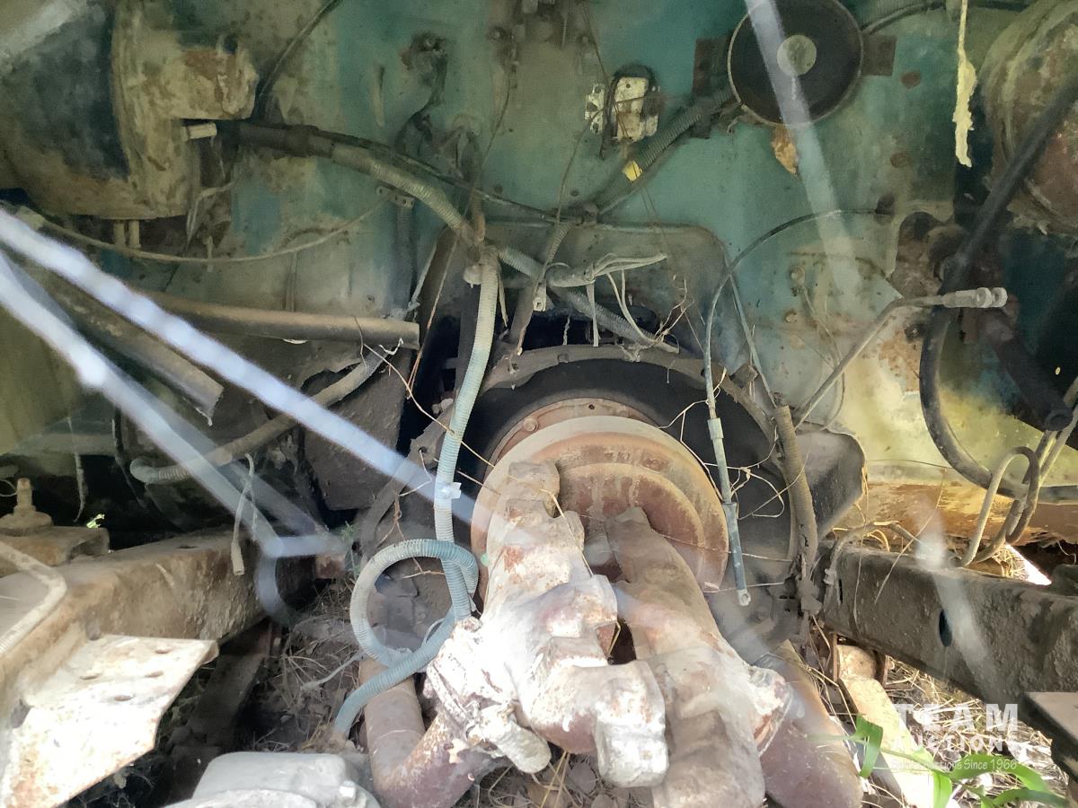 No engine, has a transmission, front and rear differential, cab full of pieces