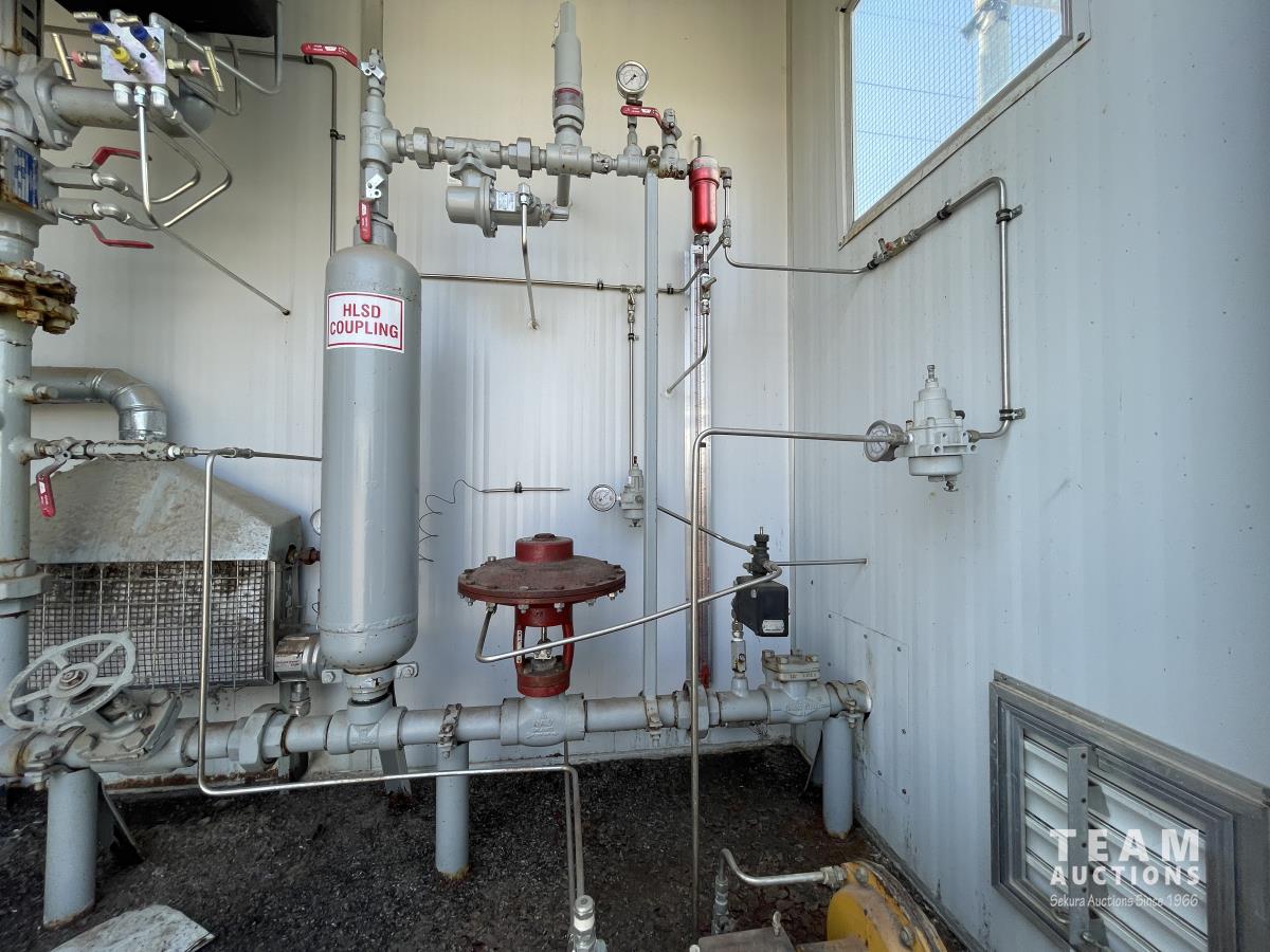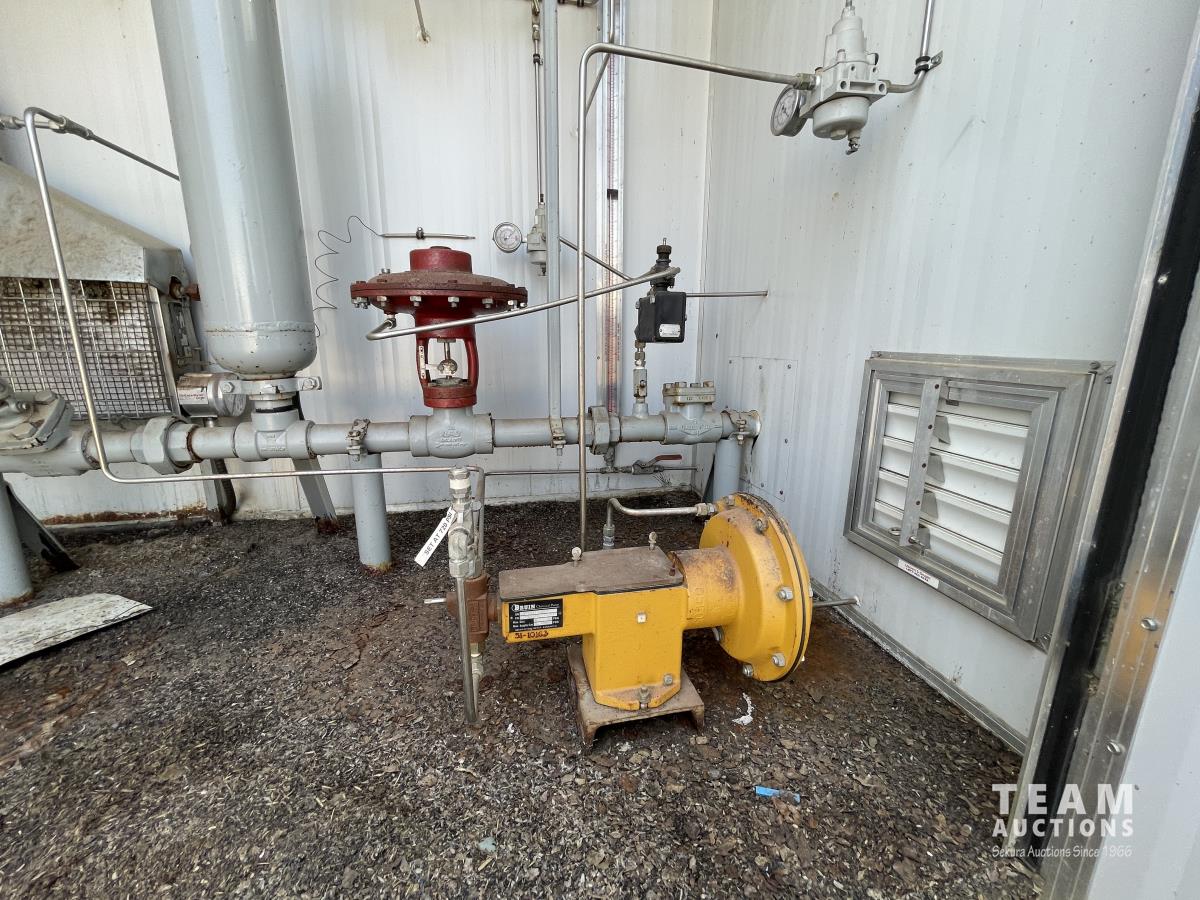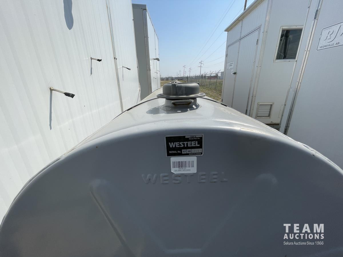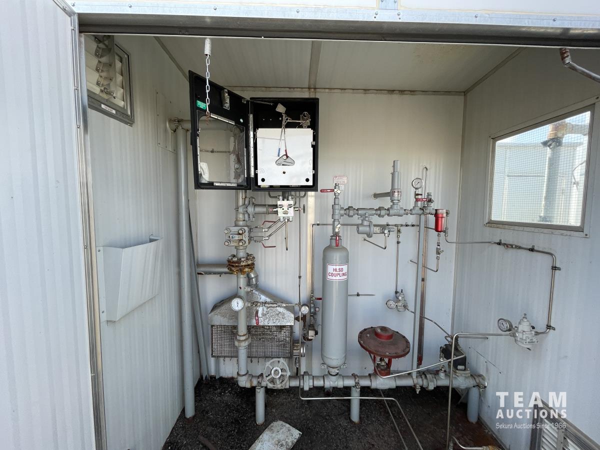 Skid dimensions 7 ft wide X 8 ft long X 8 ft high, building dimensions 4 ft wide X 7 ft long X 7 ft 0 inch high, double wall Westeel mounted tank, chemical injectors and meters