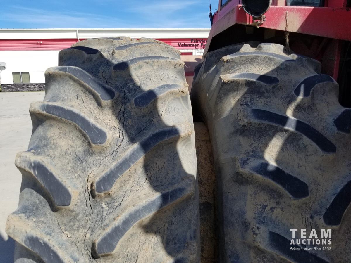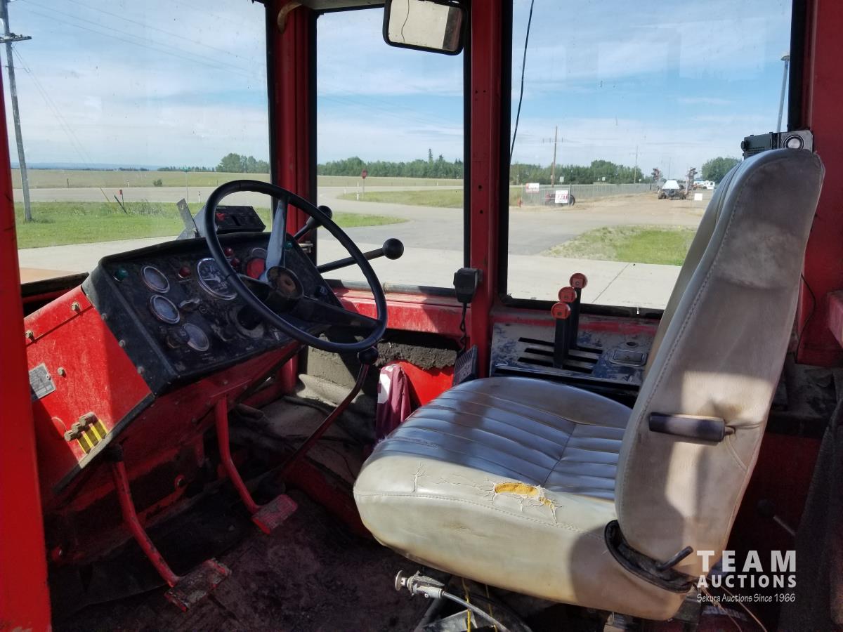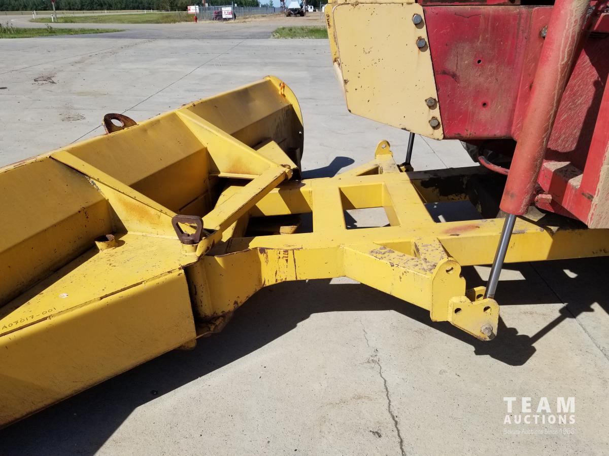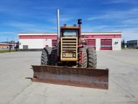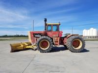 903 14.8 L V8 295 HP, diesel engine, 26.9 GPM hydraulic pump, cab, CB radio, 2 way radio, Degleman 12 Ft Mech Angle Dozer Blade, 4 rear hydraulic outlets, 20.8-38 tires