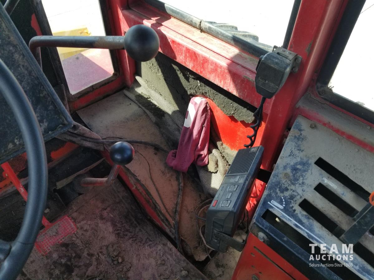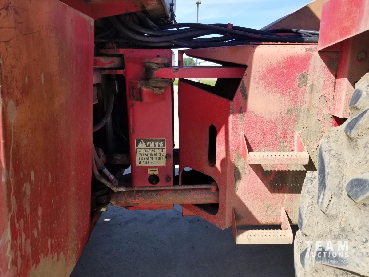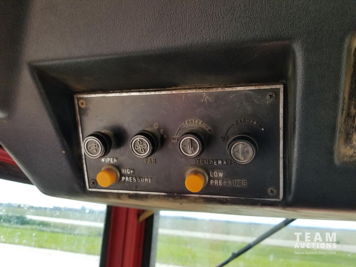 903 14.8 L V8 295 HP, diesel engine, 26.9 GPM hydraulic pump, cab, CB radio, 2 way radio, Degleman 12 Ft Mech Angle Dozer Blade, 4 rear hydraulic outlets, 20.8-38 tires