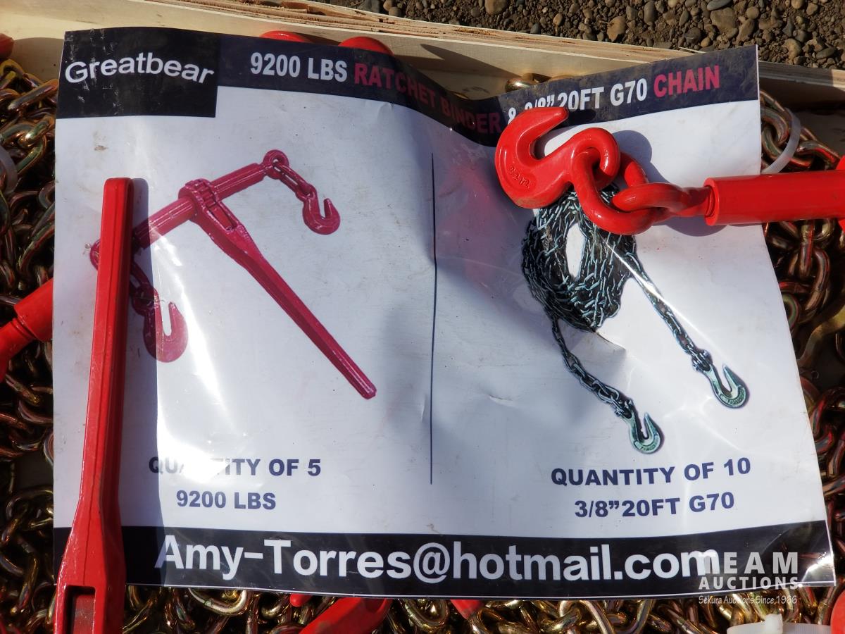 (5) 9200 lb ratchet binders, (10) 3/8 inch 20 ft G70 chains