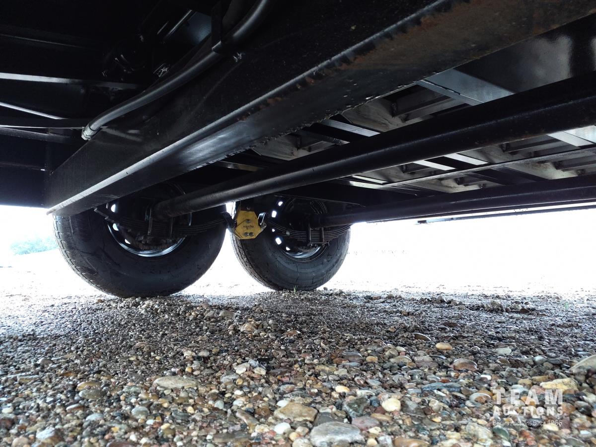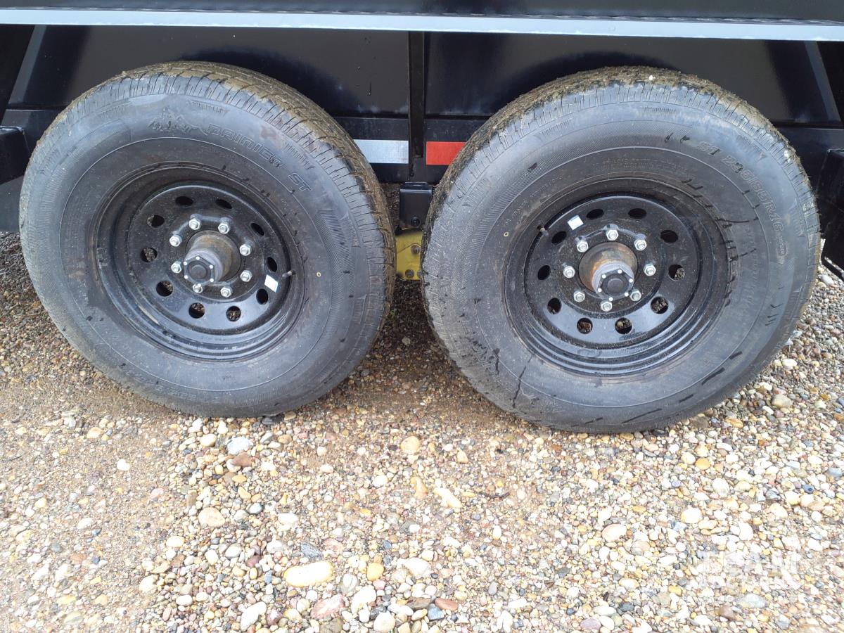 Ball hitch, 7 ft box width, roll tarp, ramps, electric brakes, spring suspension, 7,255 lb axles, ST235/85R16 tires