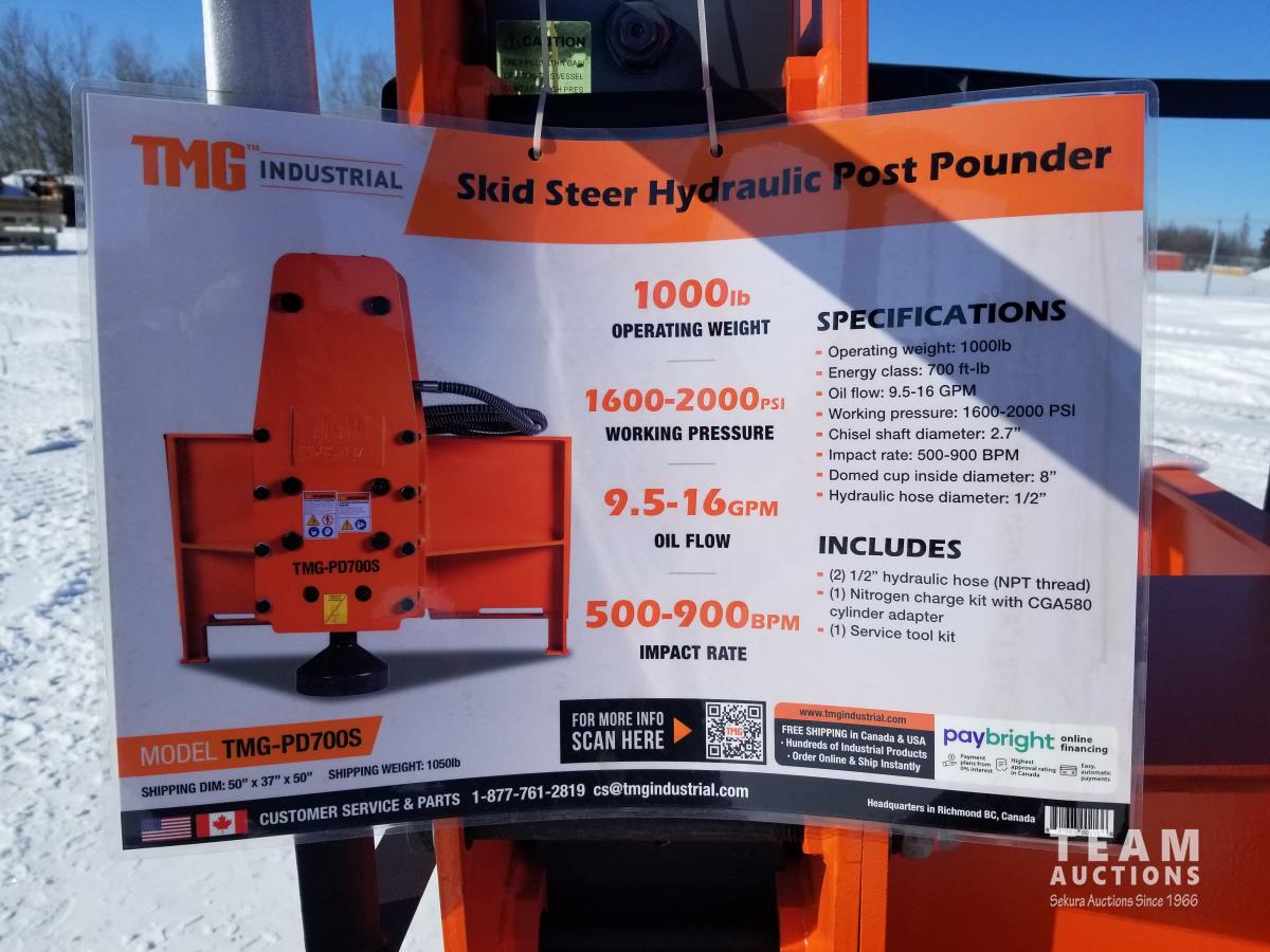 624 TMG Industrial PD700S 8 Inch Hydraulic Post Pounder - Skid Steer Attachment (Unused)