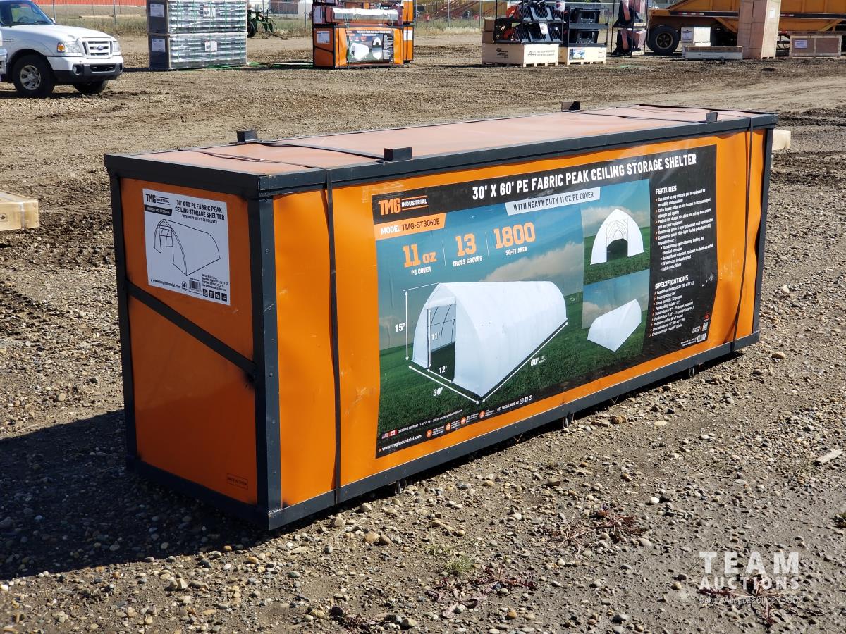 118 TMG Industrial ST3060E 30 Ft X 60 Ft Peak Storage Shelter (Unused)