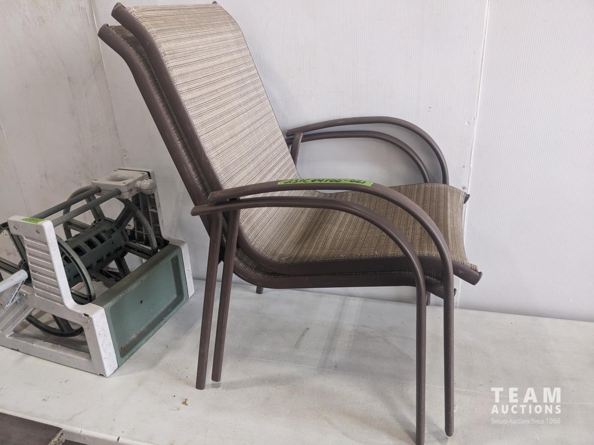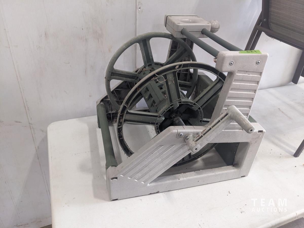 1834 (2) Lawn Chairs, Hose Reel, Small Table, Coffee Table