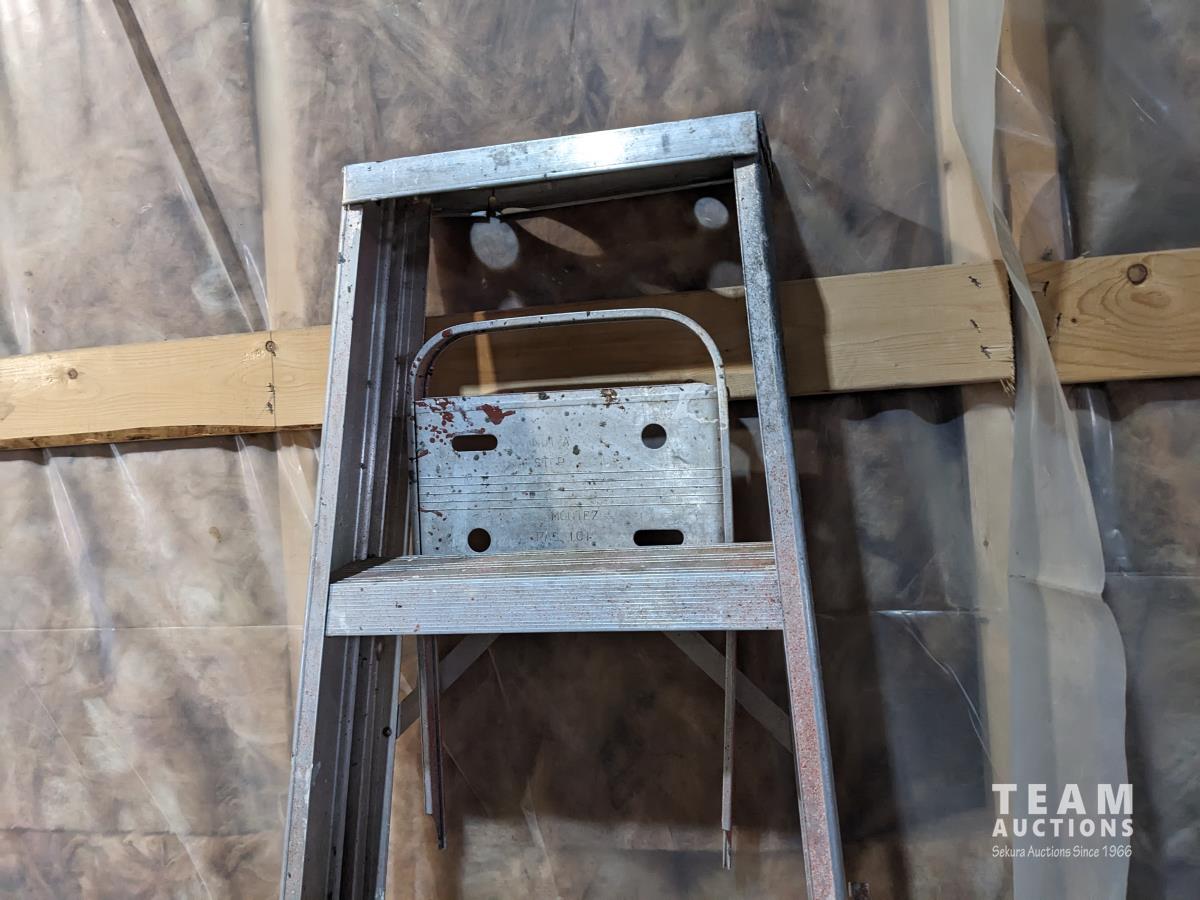 1137 (2) Wood Saw Horses and 6 Ft Aluminum A-Frame Ladder