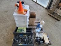 18 seed starter pots, traffic cones, poly 3 drawer shelf, size 6 skates, safety knives, ceramic Christmas light decor, PIAA aluminum tubular 1.25 inch - 1.5 inch light mounting kit, Joseph statue, base cabinet level adjustors
