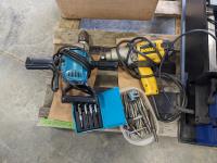 Powerfist mini lathe and accessories, Dewalt drill, Makita drill, taps, tool sharpener