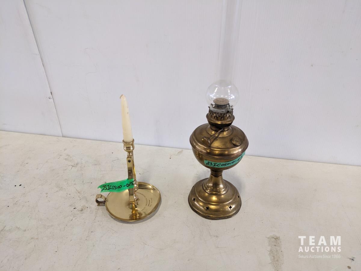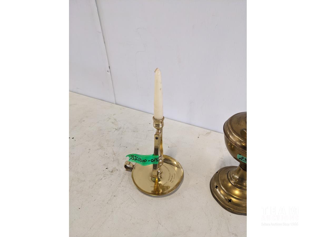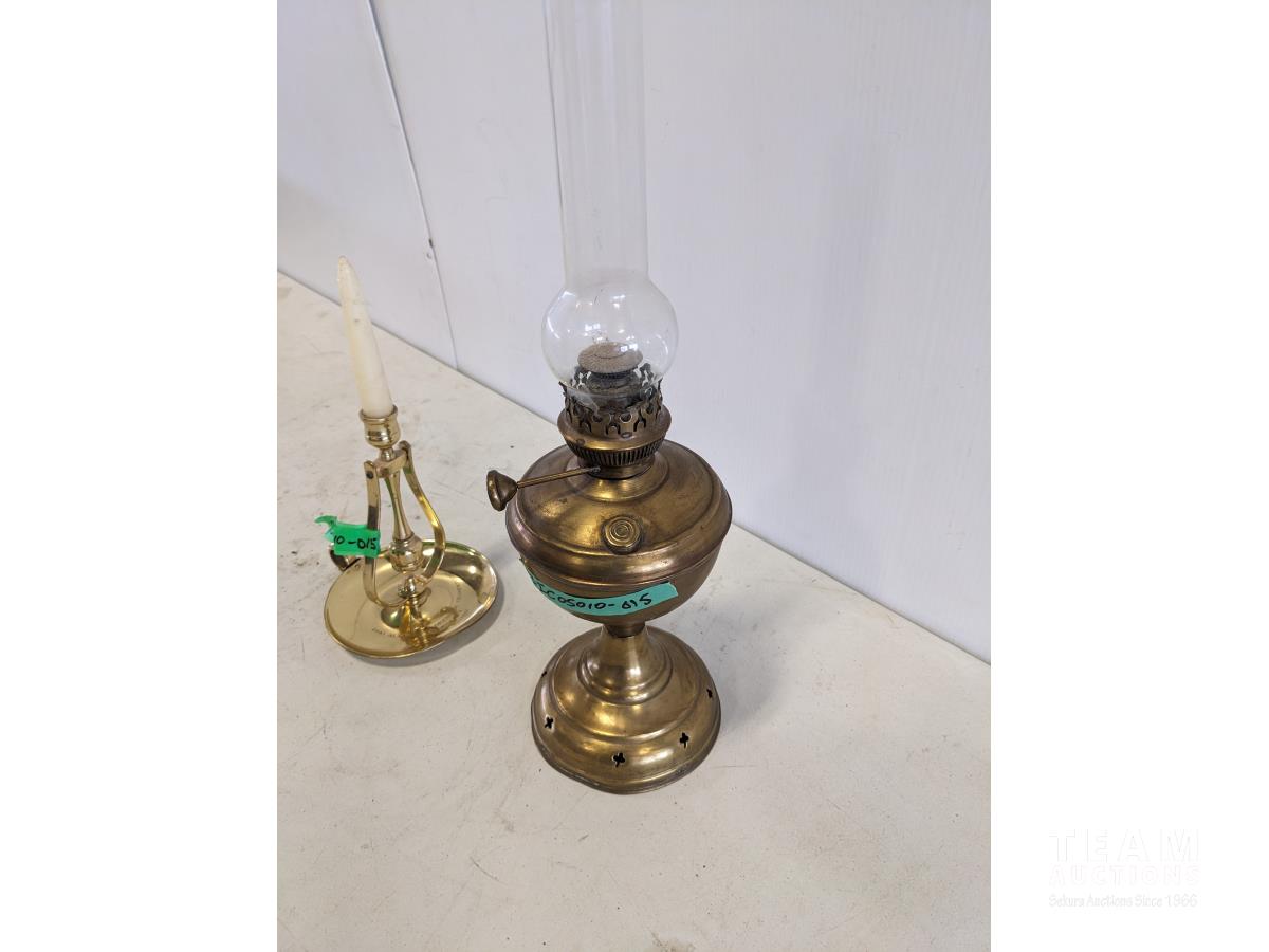 1096 Ships Weighted Brass Candle Holder and Brass Coal Oil Lamp