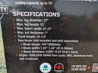 14 HP Kohler Gas Engine, 21 inch Board Width, 12 ft Log Length, 14-1/2 ft Track Bed