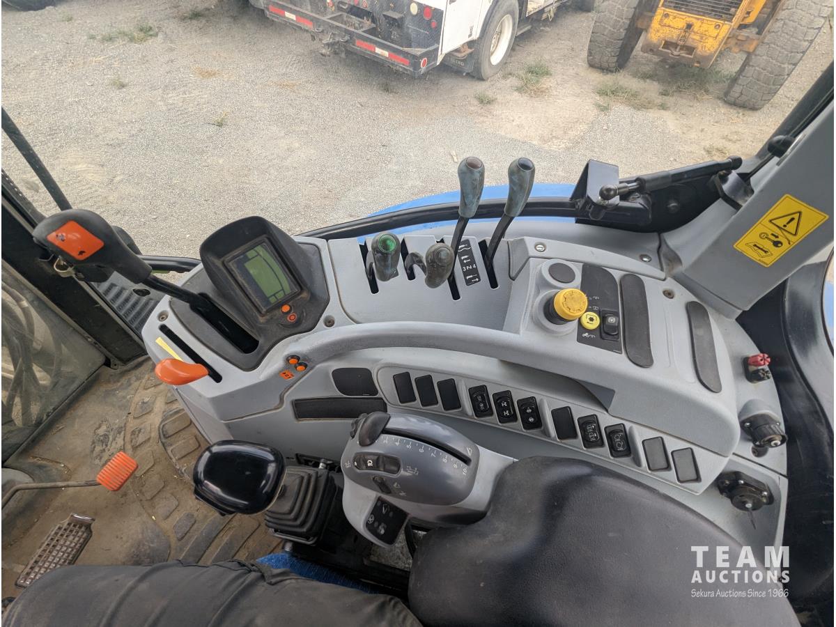 New Holland 855TL loader, 96 inch bucket, new holland 1343203 6.7 L 6 cylinder 175 HP, diesel engine, DEF required, 120 PTO HP, 18 speed partial power shift transmission, 29 GPM hydraulic pump, cab, ROPS, left hand reverser, front and rear differential lock, A/C, radio, buddy seat, 540/1000 PTO, 3 point hitch, 3 point hitch exterior control, 4 rear hydraulic outlets, rear wheel weights, 14.9R28 front tires, 18.4R38 rear tires