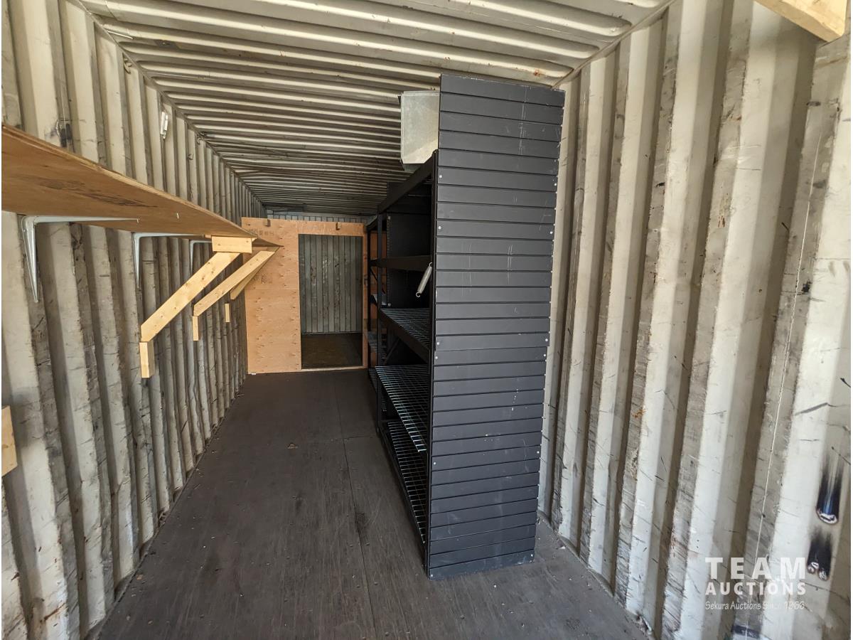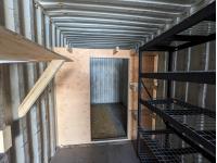 Rear swing doors, 9 ft 6 inch high, (2) shelving units