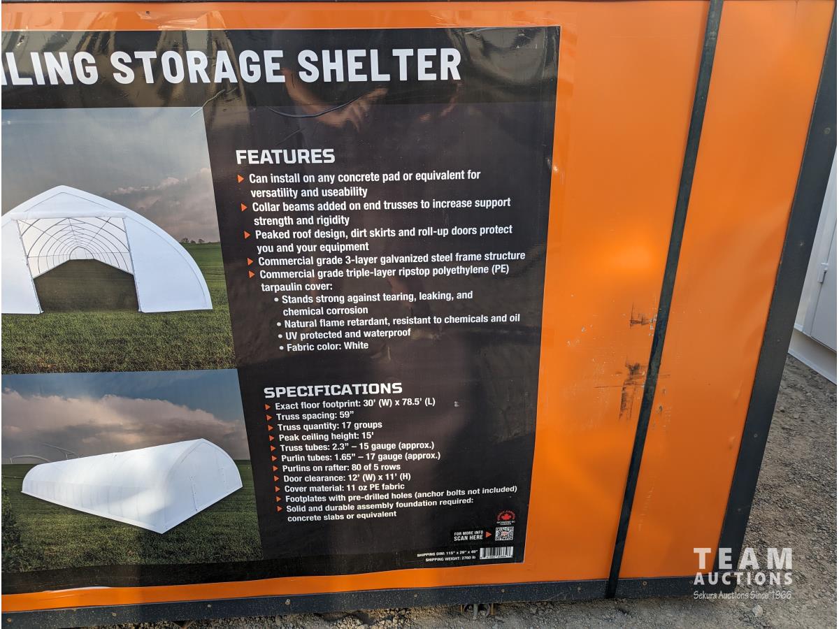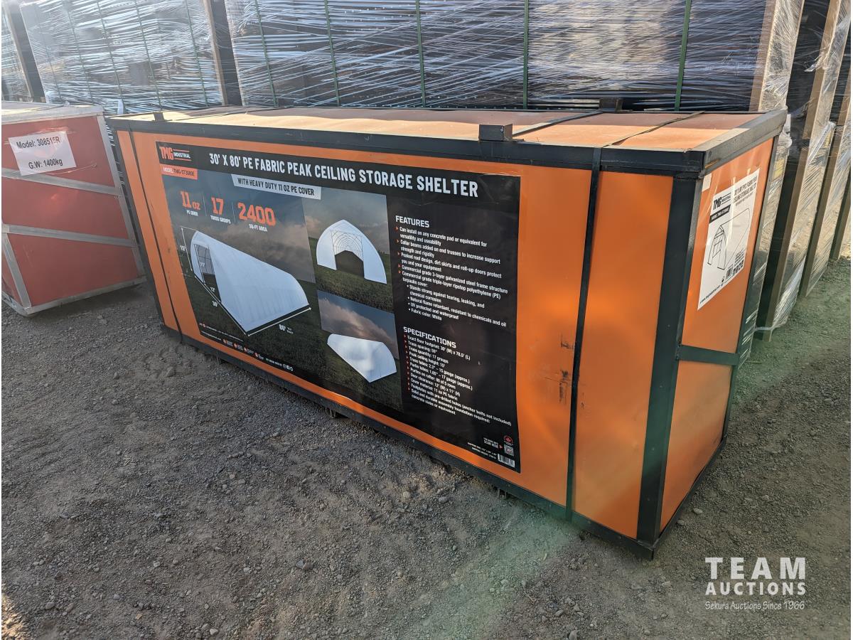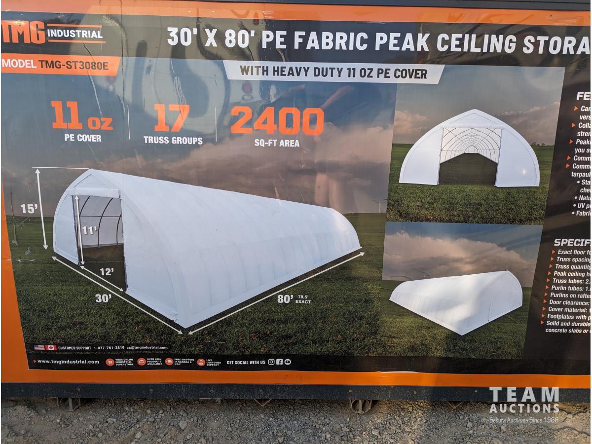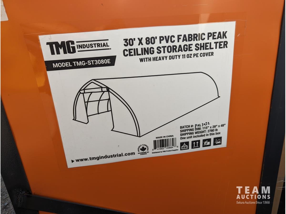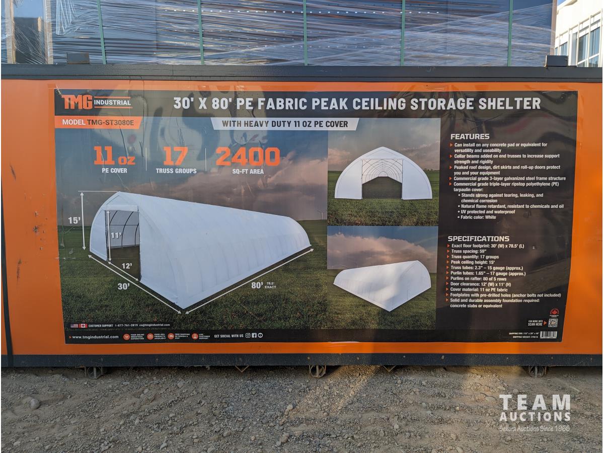 75 TMG Industrial ST3080E 30 Ft X 80 Ft Peak Ceiling Storage Shelter (Unused)