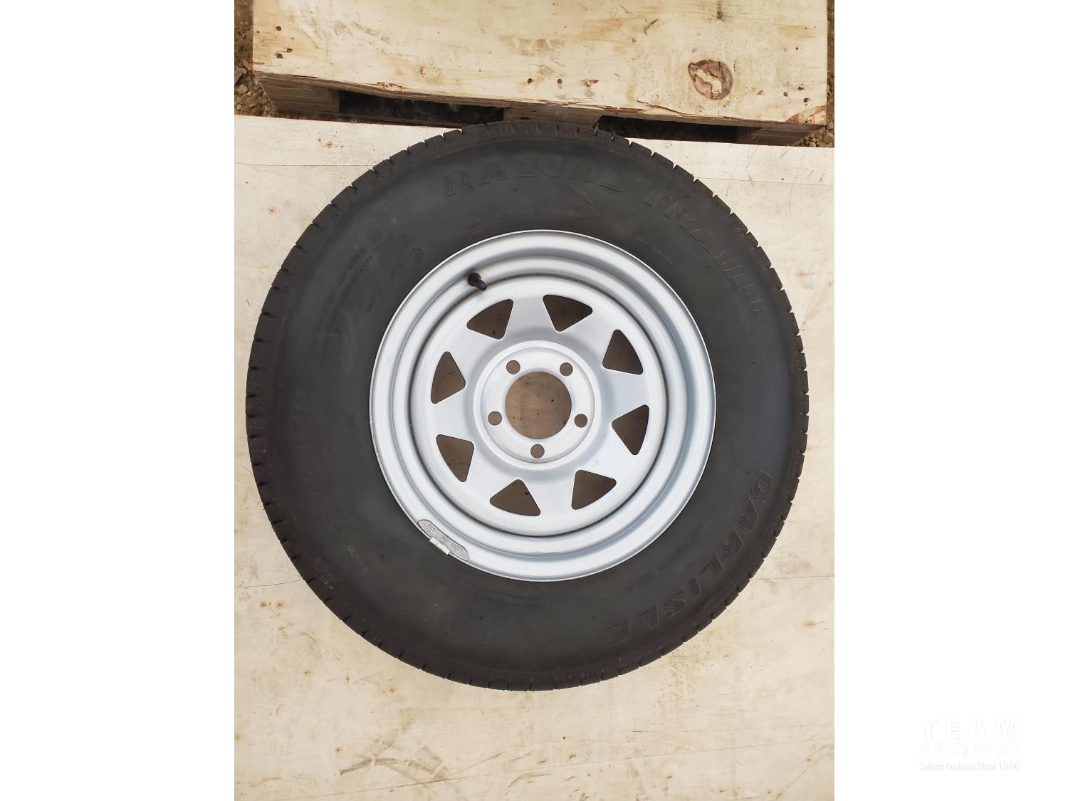 Mounted & Balanced On 5 on 4-1/2 inch Silver Spike Trailer Rim