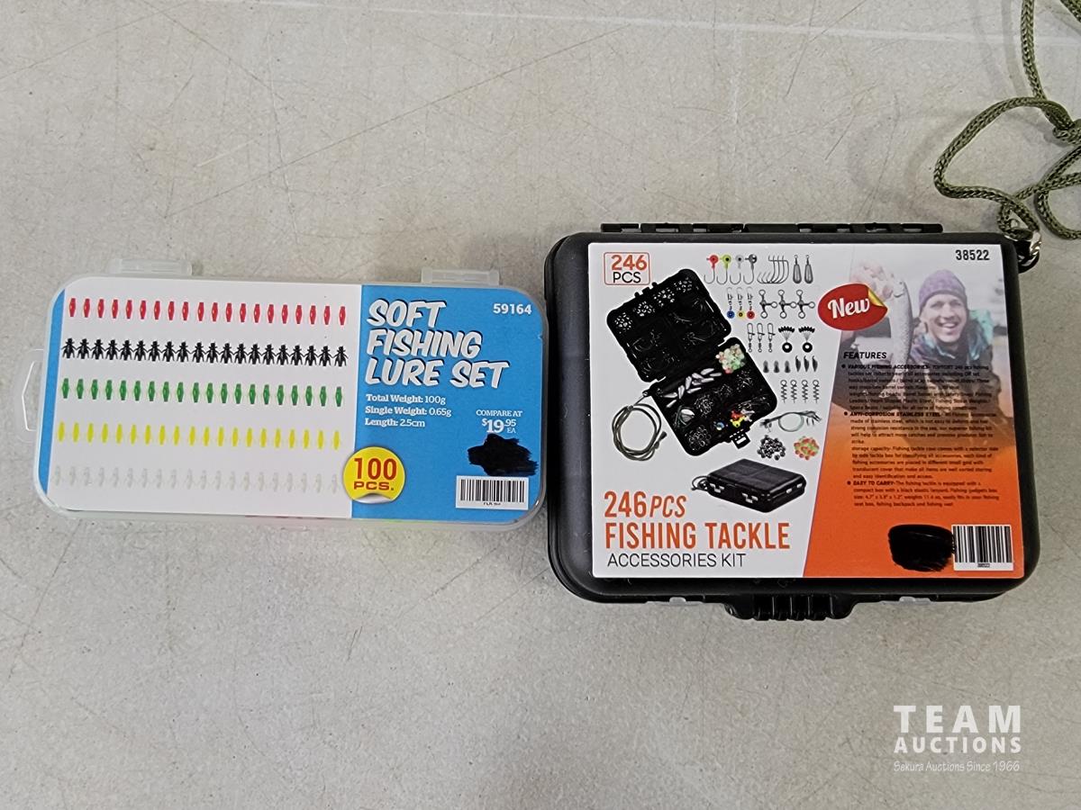 1906 100 Piece Soft Fishing Lure Set and 246 Piece Fishing Tackle (Unused)