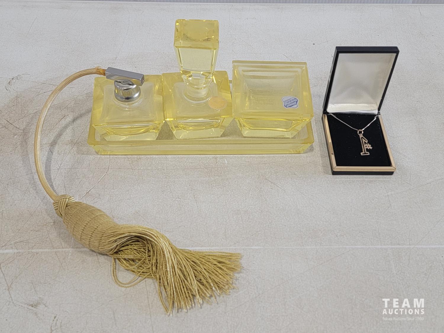 2170 10K Gold Pendant with Necklace and Lead Crystal Perfume Set