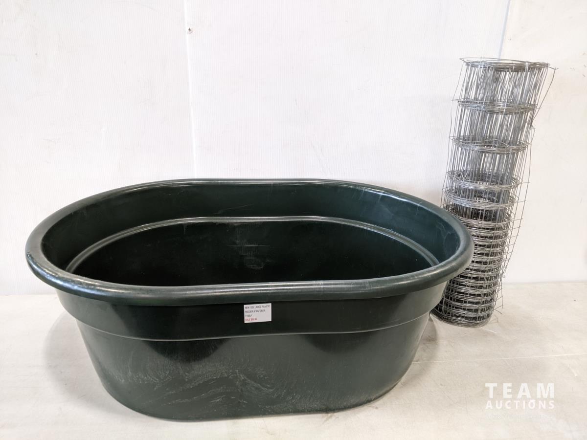 1846 150L Plastic Trough and Roll of 28 Inch Cage Wire (Unused)