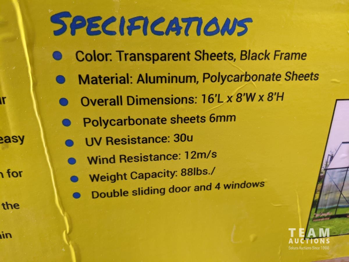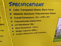 1826 16.5 Ft X 8.35 Ft Polycarbonate Greenhouse (Unused)