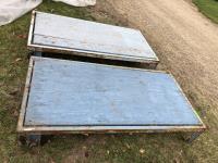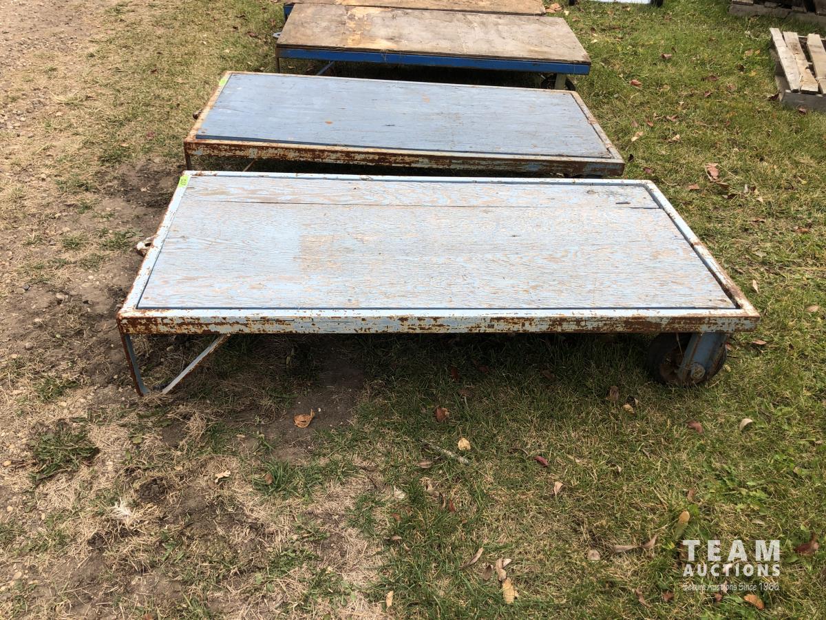 30 inch w x 60 inch l, 3/4 inch plywood deck, steel frame, rubber covered steel wheels