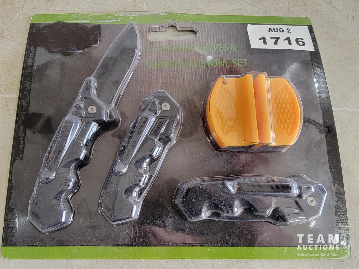 2067 (3) Tactical Knives and Sharpening Stone Set (Unused)