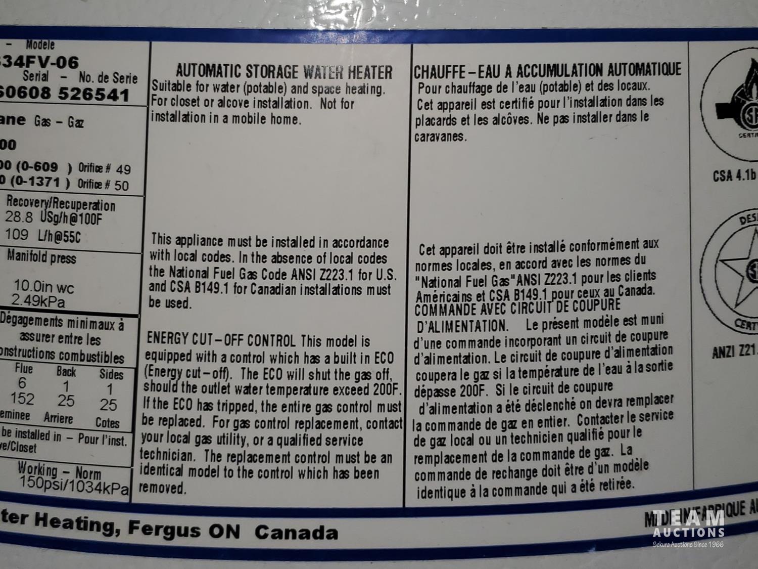 1390 40 Gallon 38,000 BTU GSW LPG Water Heater