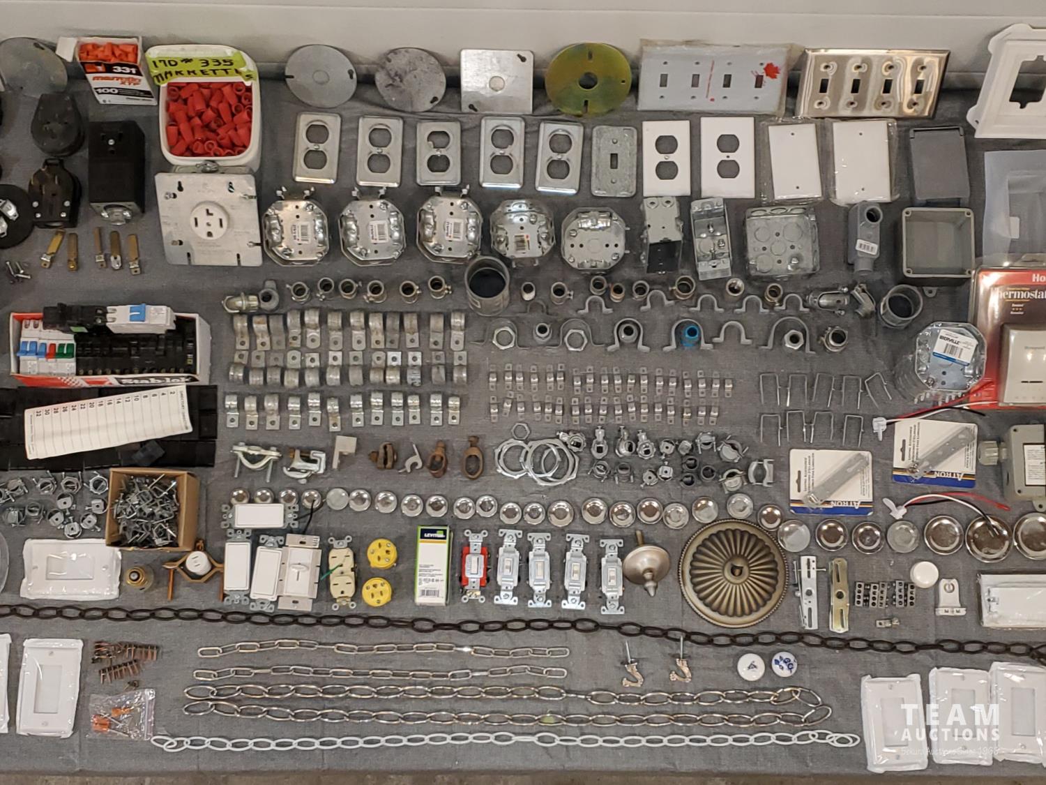 Federal Pioneer Stab Lock Breakers: 9 -15 amp Breakers, 3- 15 amp Double Pole Breakers, 1- 20 amp Breakers, 3- 30 amp Double Pole Breakers, 15 amp Square D Breaker, Honeywell Thermostat, White Rogers Thermostat, 10- 4 inch Octagon Boxes, 12- Various amp Plugs and Receptacles, Marrettes, switches, clamps, Light Chain, Plug Covers, Switch Wall Plate covers