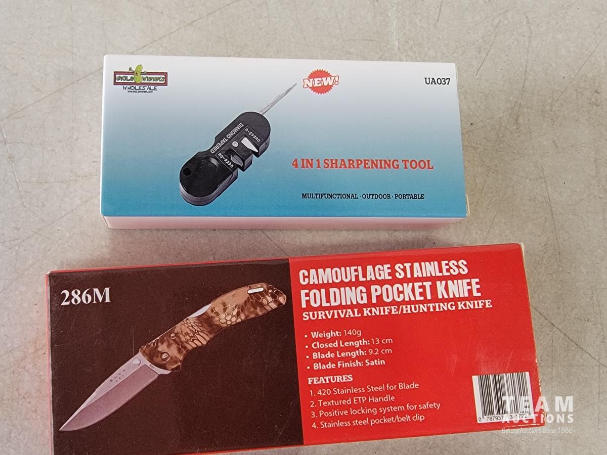 2096 Tactical Spring Assisted Knife and 4-In-1 Sharpening Tool (Unused)