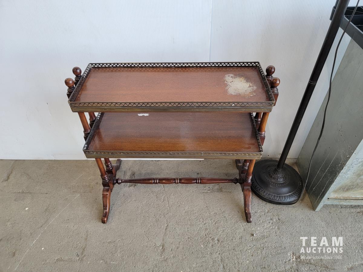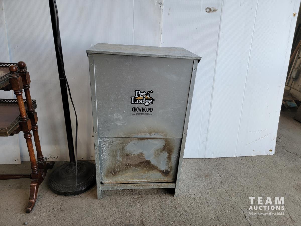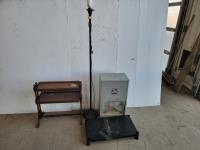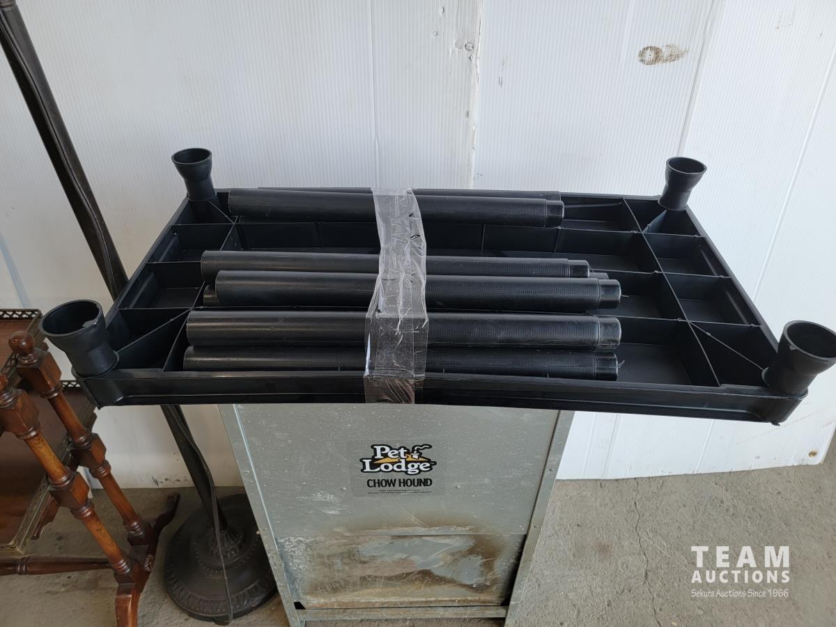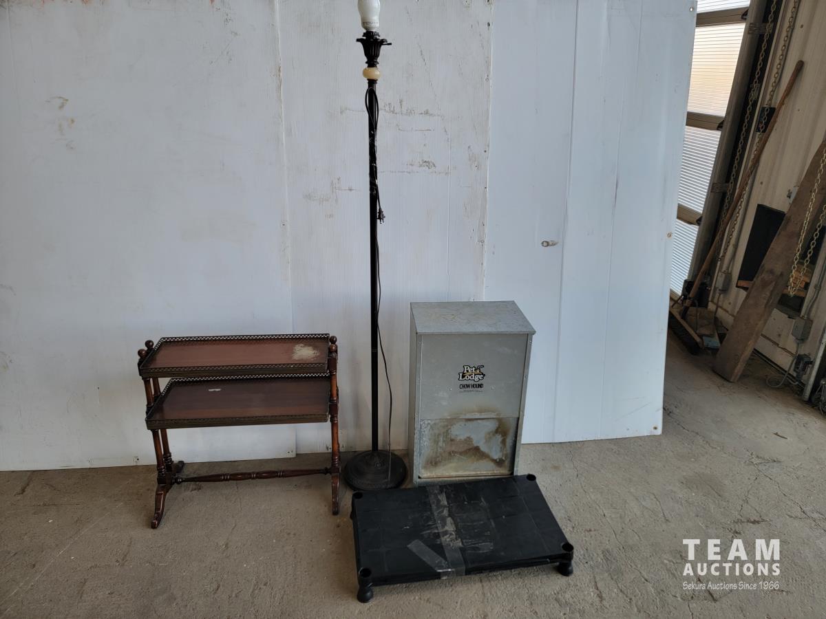 1296 Large Chow Hound Pet Feeder, Lamp, 2 Shelf End Table and Small Plastic Shelf