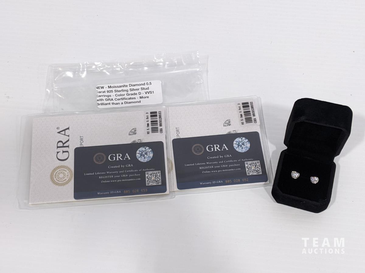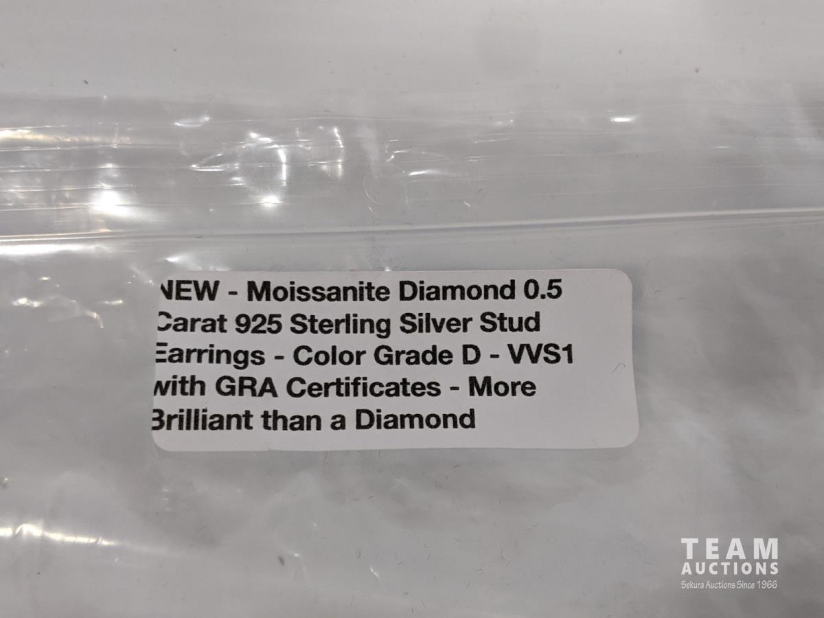 2158 Moissanite 0.5Ct Diamond 925 Sterling Silver Stud Earrings (Unused)