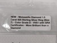 2147 Moissanite 1.0Ct Diamond 925 Sterling Silver Ring Size 7 (Unused)