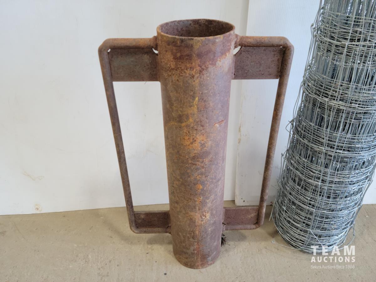 1442 Partial Roll of 4 Ft Field Fencing and Hand Post Pounder