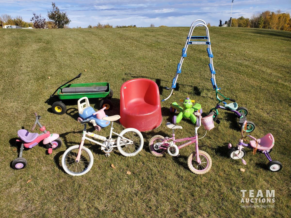 2378 Qty of Children's Toys, Bikes, Three Step Aboveground Pool Ladder and Pool Lounge Chair