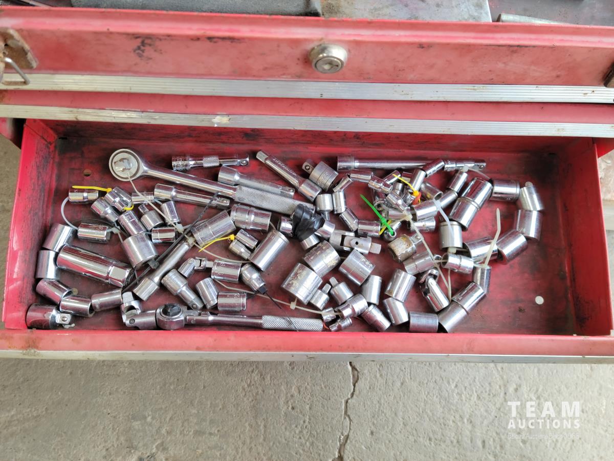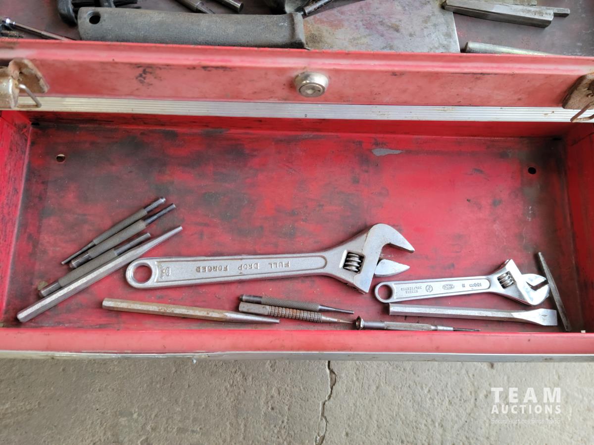 1437 Qty of Hand Tools, Baldor Bench Grinder and Tool Box with Contents