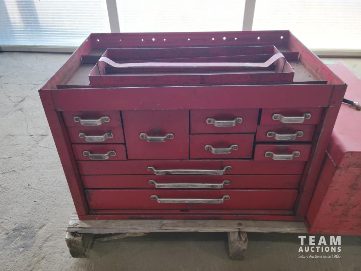 Large toolbox measures 26 inch w x 16-3/4 inch d x 17 inch h