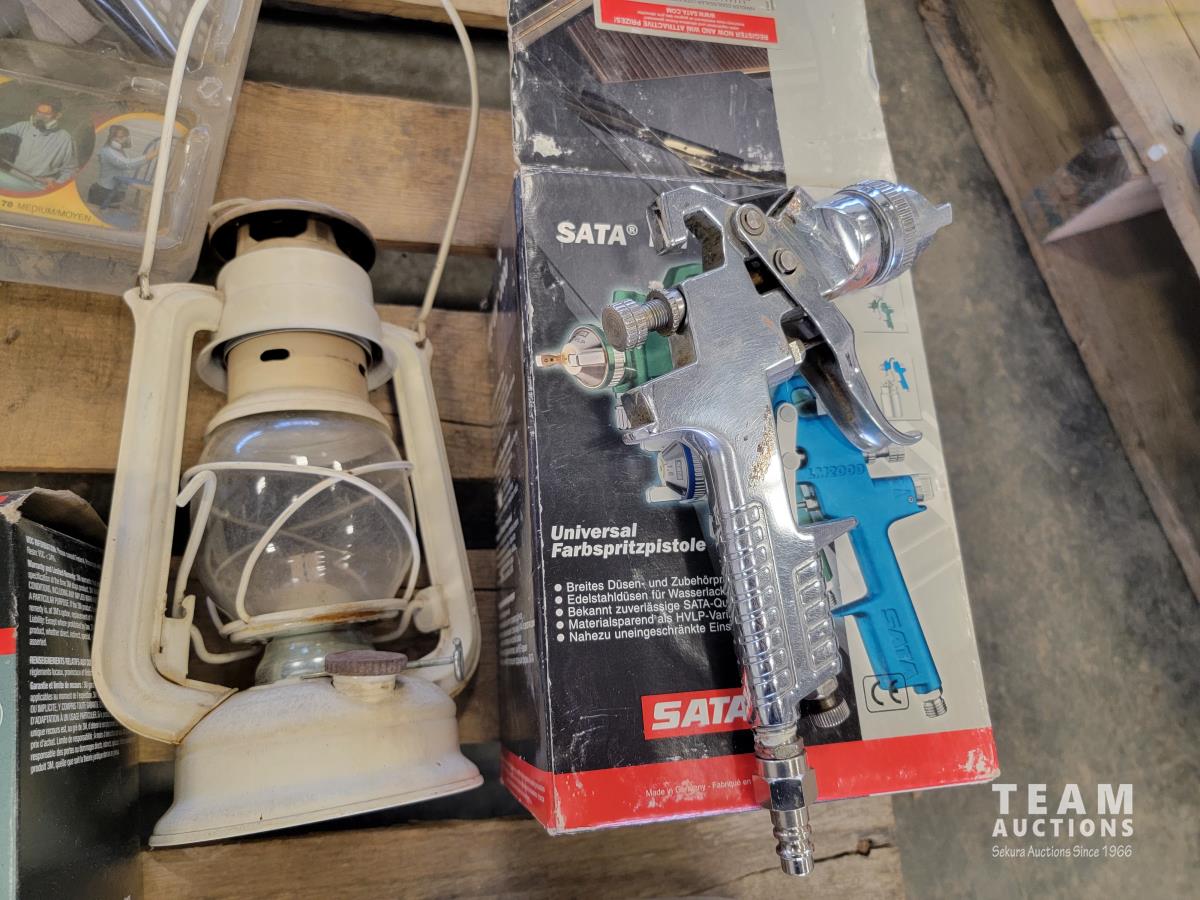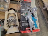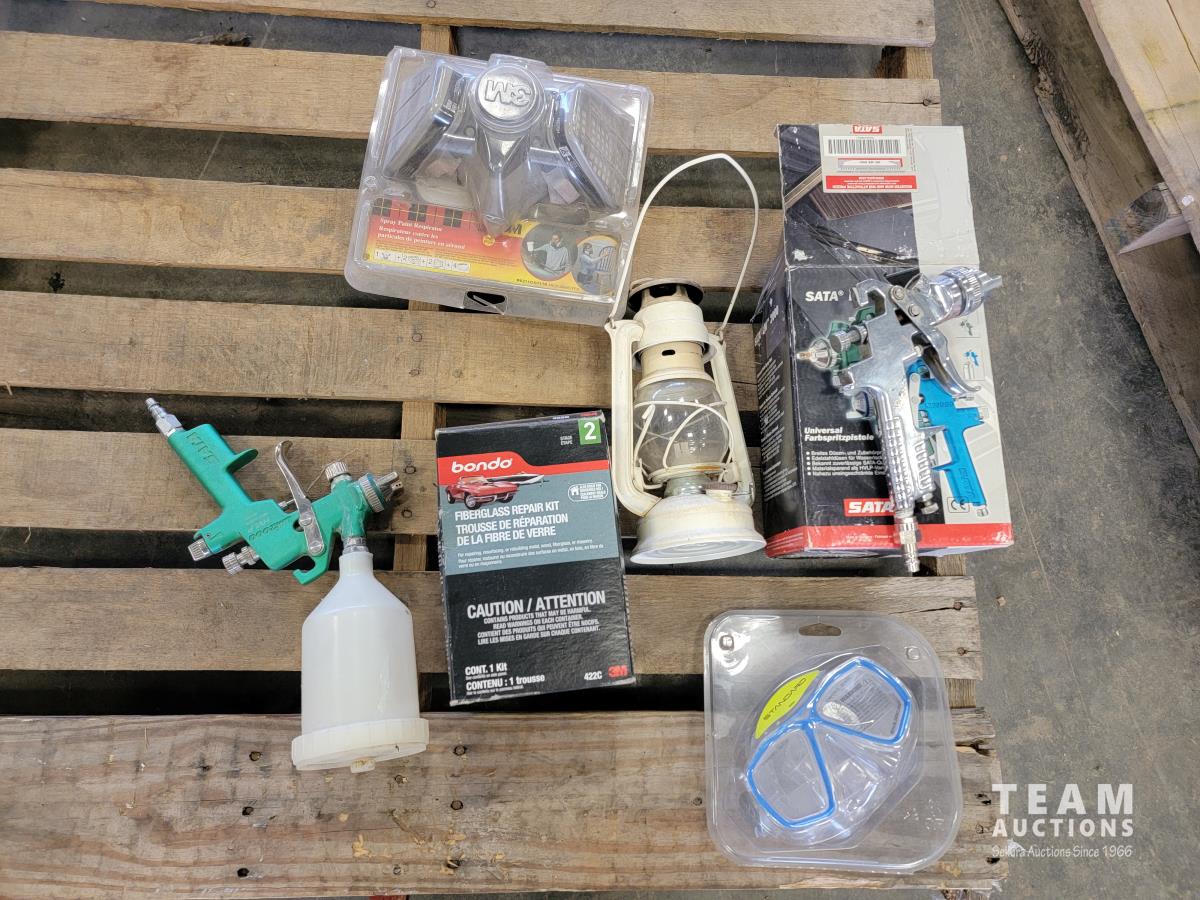 Lantern, (2) paint sprayers, mask, fiberglass repair kit
