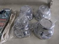 4-ABS Chrome Plated Wheel Covers (HUB Cap Fits Trailer wheels with 5 Lug Nuts on 4.5 Inch Bolt Pattern 13,14,15 Inch Wheels), Single axle hanger Kits, bag of Shackle Link, Bolt & Nut Kits, Bag #12x3 inch Zink Self Drilling Cap Screws, Clear Zinc Finish Trailer Jack Foot Plates, Shackle Nuts, Shackle links, Clearance Lights, Reflectors, 2 New Aluminum Tread Brite Trailer Fenders