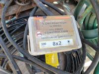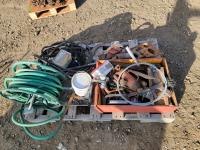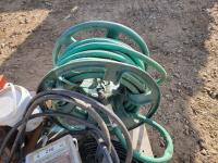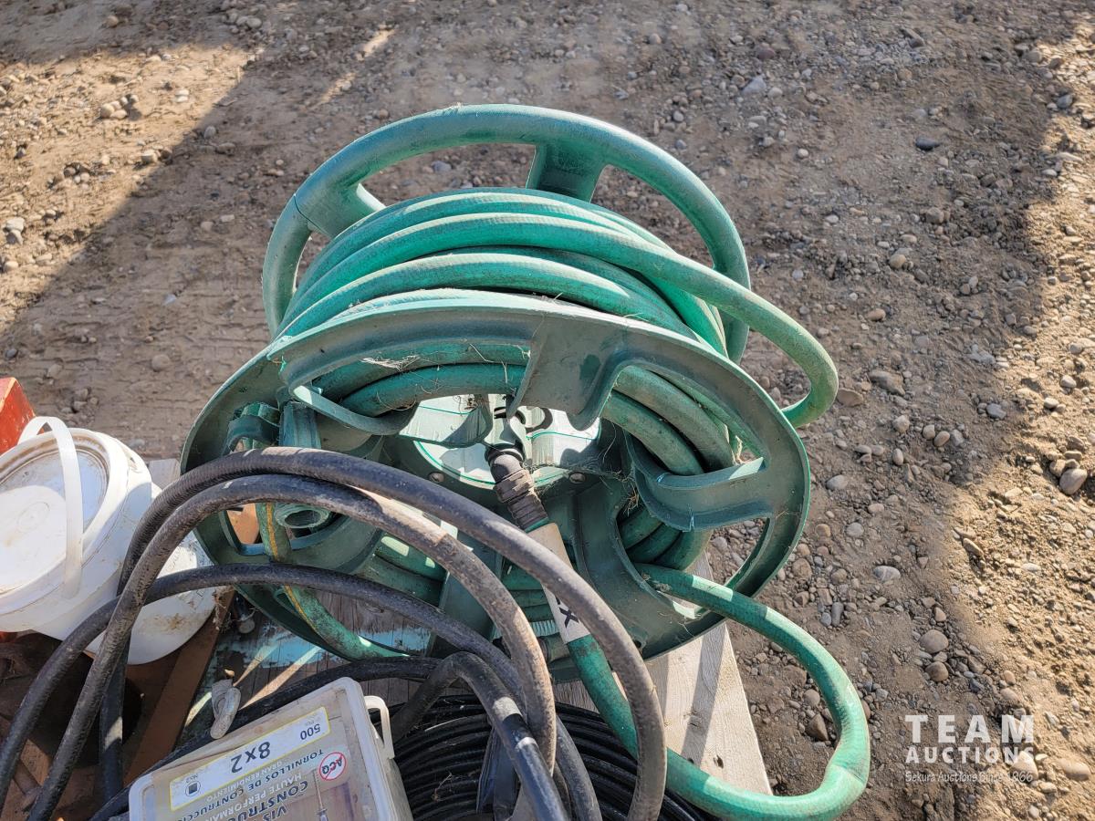 Hand saws, torch, construction screws, bottle jack, hitch, garden hose with reel