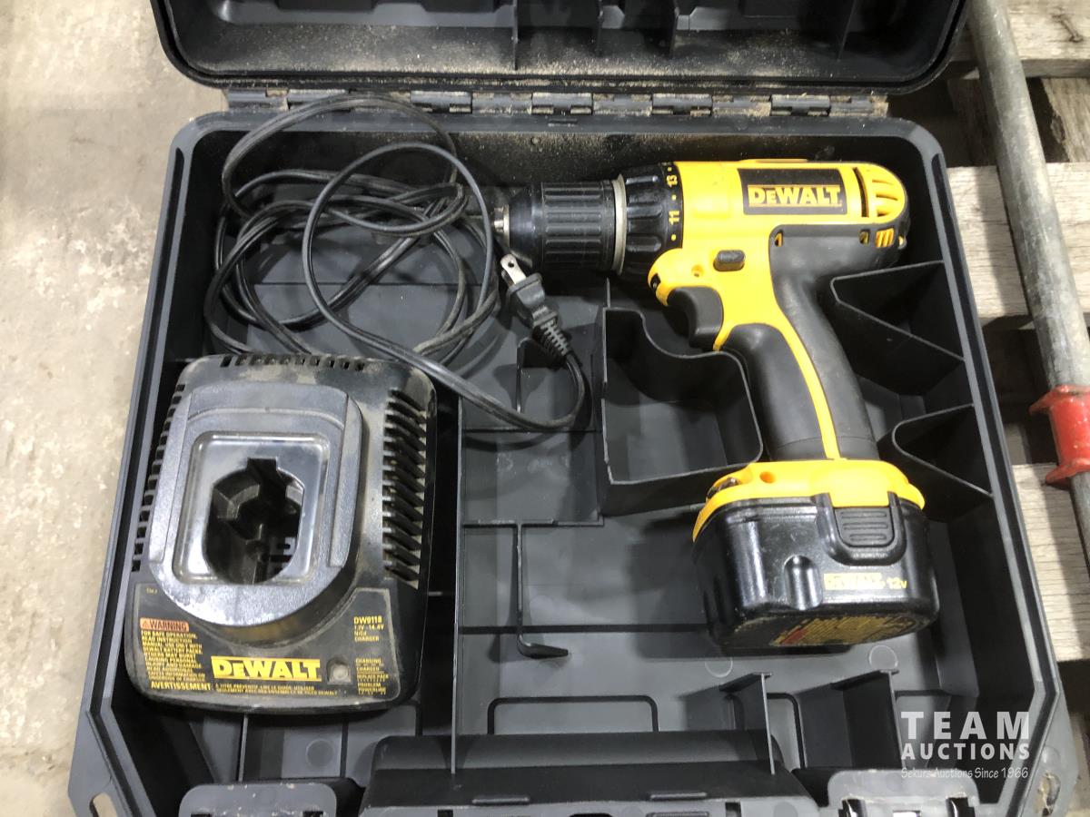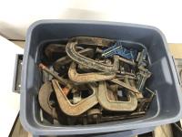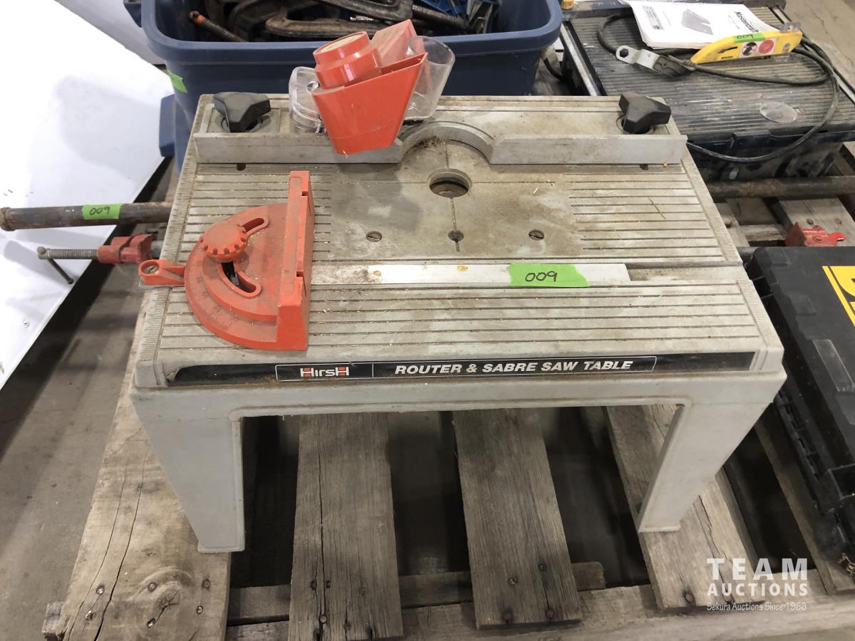 Qty of clamps various sizes, Dewalt 12v cordless drill and charger, Hirsh bench router table and mastercraft wet tile cutter