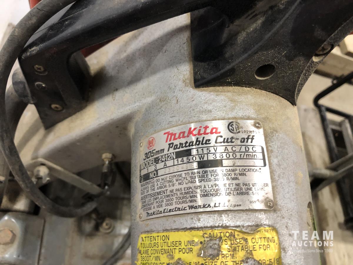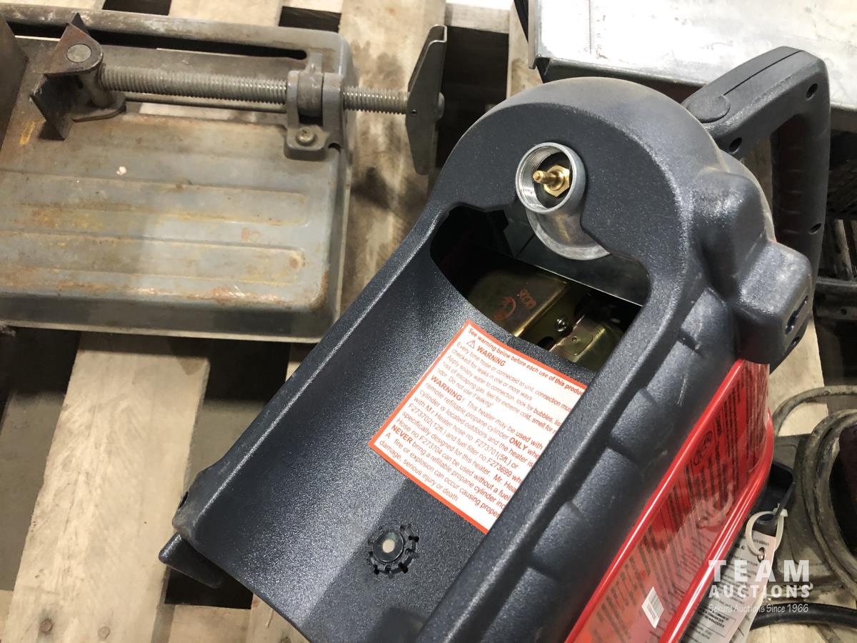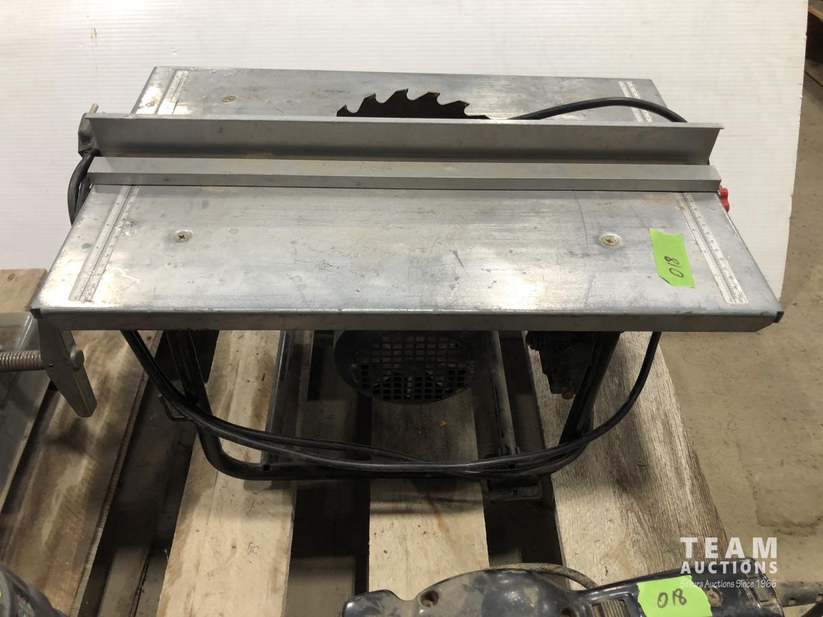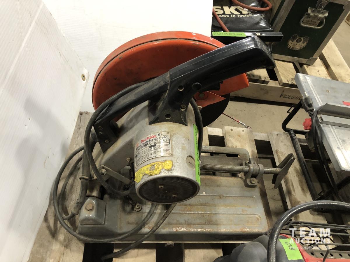 Mr. Heater portable buddy heater, Makita 12 cut off saw, Black & Decker finish sander, 8 inch bench top table saw