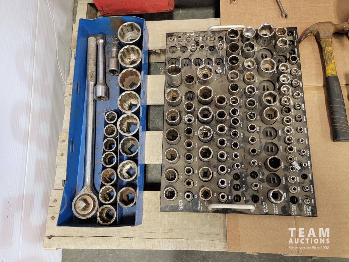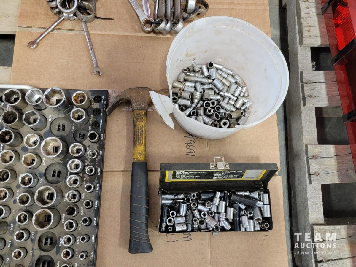 Sockets, wrenches, hammer, toolbox