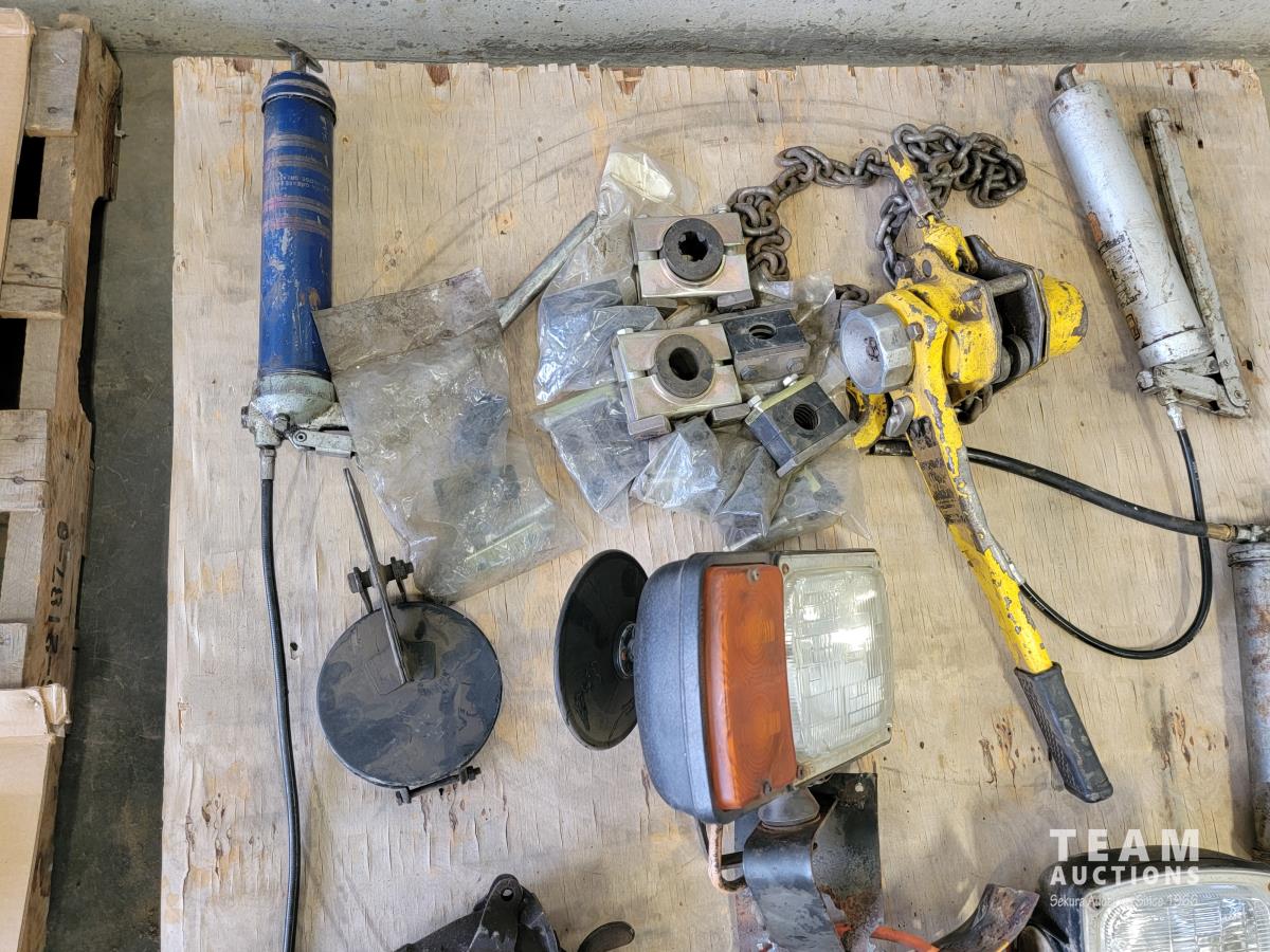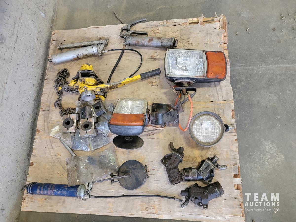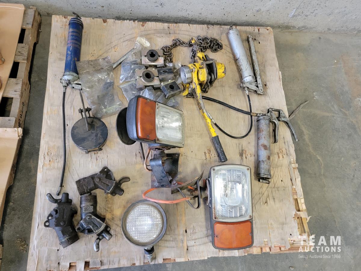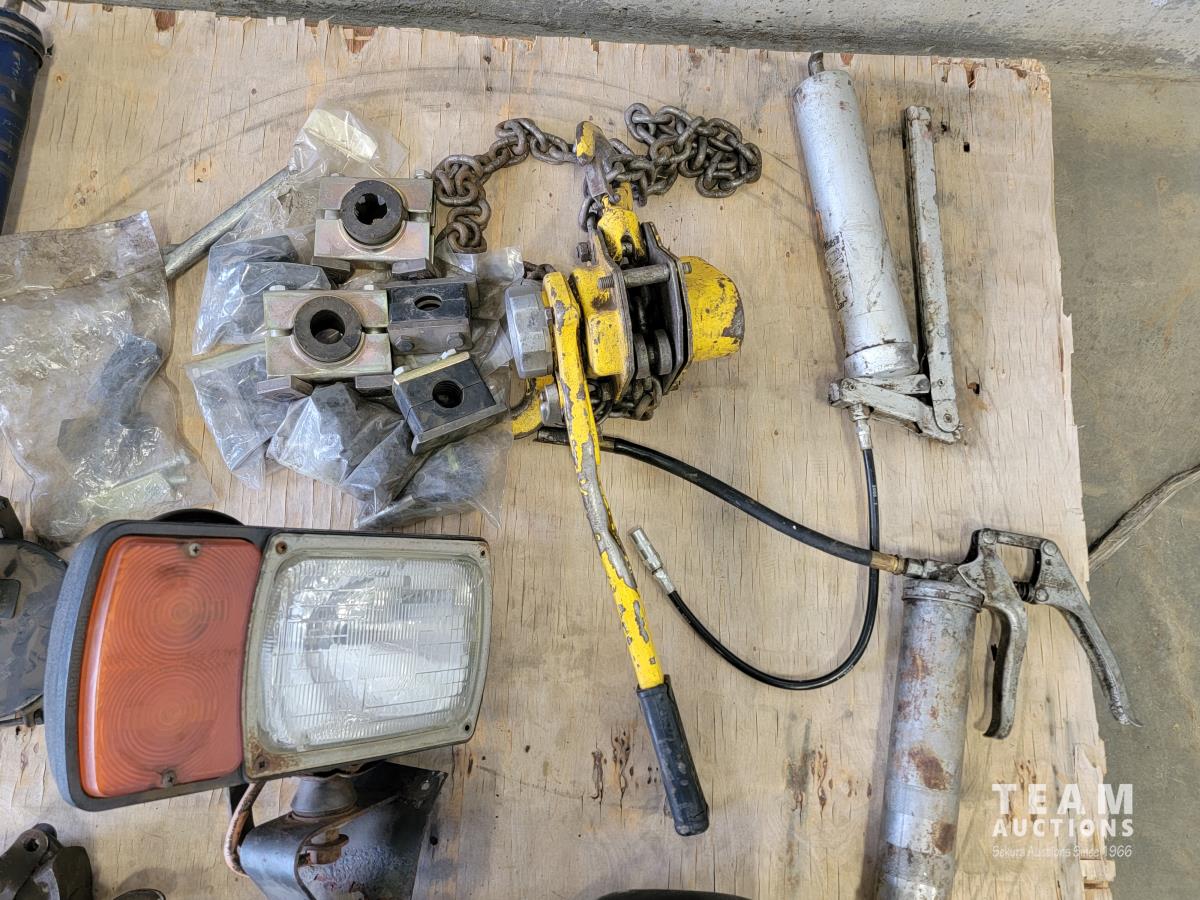 Grease guns, 1-1/2 ton chain puller, lights